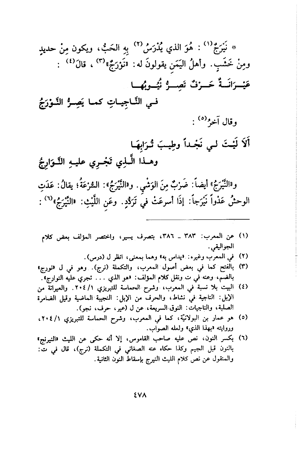 * نيرج: هو الذي يدرس به الحب، ويكون من حديد ومن خشب. وأهل اليمن يقولون له: (نورج)، قال: