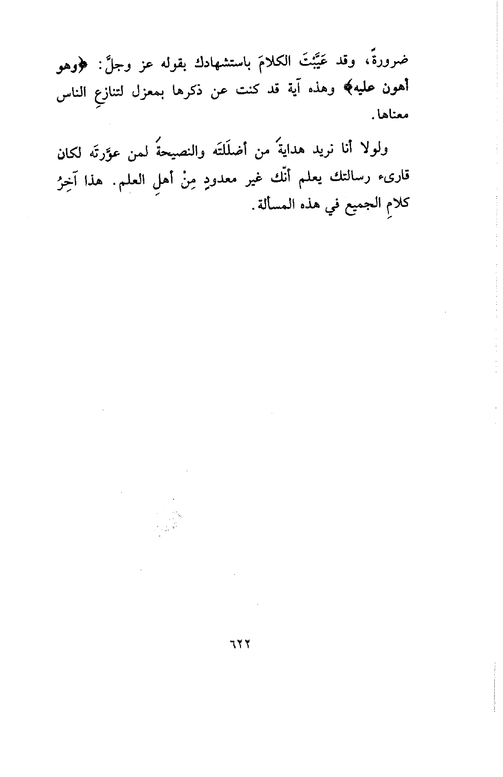 ولولا أنا نريد هداية من أضللته والنصيحة لمن عورته لكان قارئ رسالتك يعلم أنك معدود من أهل العلم. هذا أخر كلام الجميع في هذه المسألة.