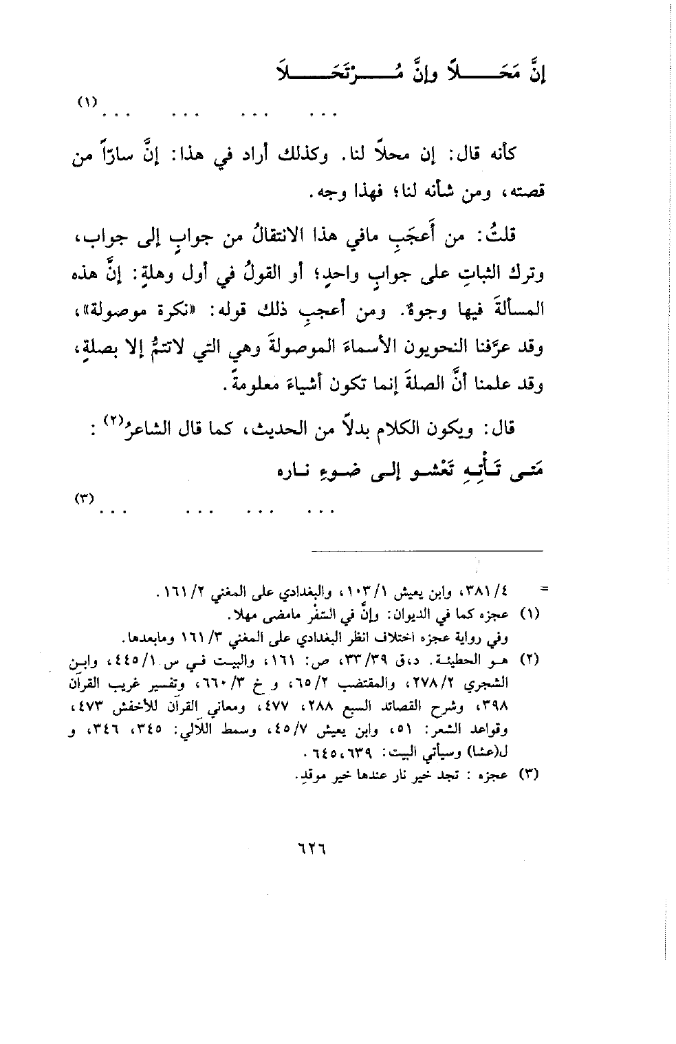 قلت: من أعجب ما في هذا الانتقال من جواب إلى جواب، وترك الثبات على جواب واحد؛ أو القول في أول وهلة: إن هذه المسألة فيها وجوه. ومن أعجب ذلك قوله: (نكرة موصولة)، وقد عرفنا النحويون الأسماء الموصولة وهي التي لا تتم إلا بصلة، وقد علمنا أن الصلة إنما تكون أشياء معلومة.