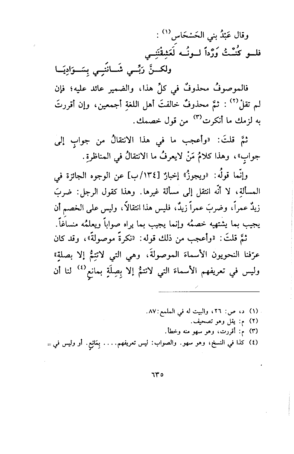 وإنما قوله: (ويجوز) إخبار [134/ب] عن الوجوه الجائزة في المسألة، لا أنه انتقل إلى مسألة غيرها. وهذا كقول الرجل: ضرب زيد عمرا، وضرب عمرا زيد، فليس هذا انتقالا، وليس على الخصم أن يجيب بما يشتهيه خصمه وإنما يجيب بما يراه صوابا ويعمله منساغا.