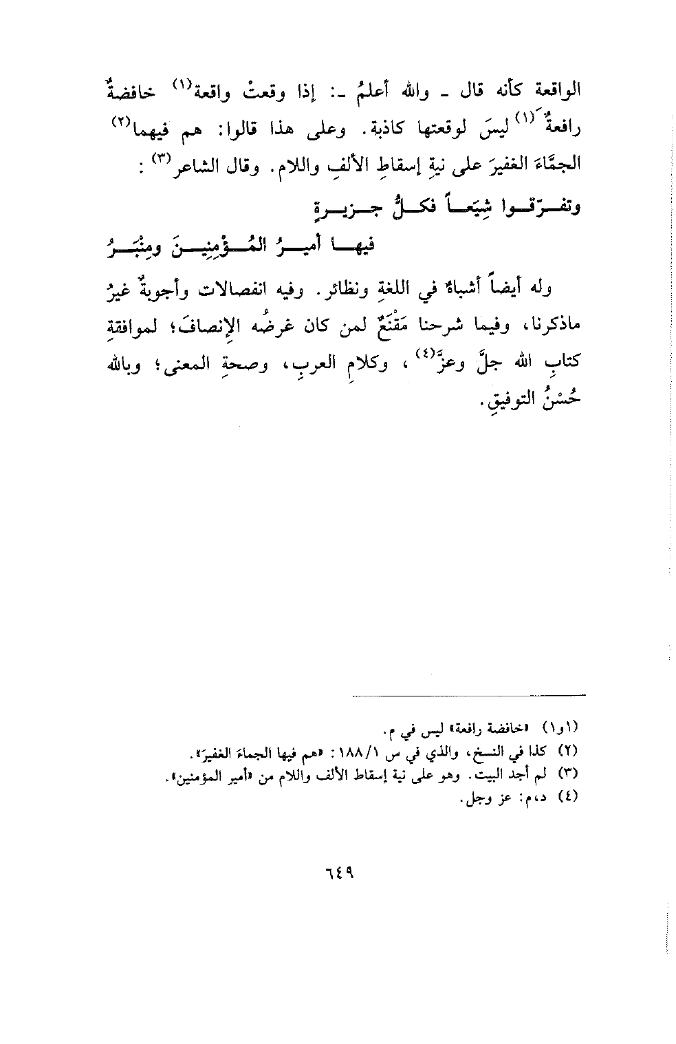 وله أيضا أشباه في اللغة ونظائر. وفيه انفصالات وأجوبة غير ما ذكرنا، وفيما شرحنا مقنع لمن كان غرضه الإنصاف؛ لموافقة كتاب الله جل وعز، وكلام العرب، وصحة المعنى؛ وبالله حسن التوفيق.