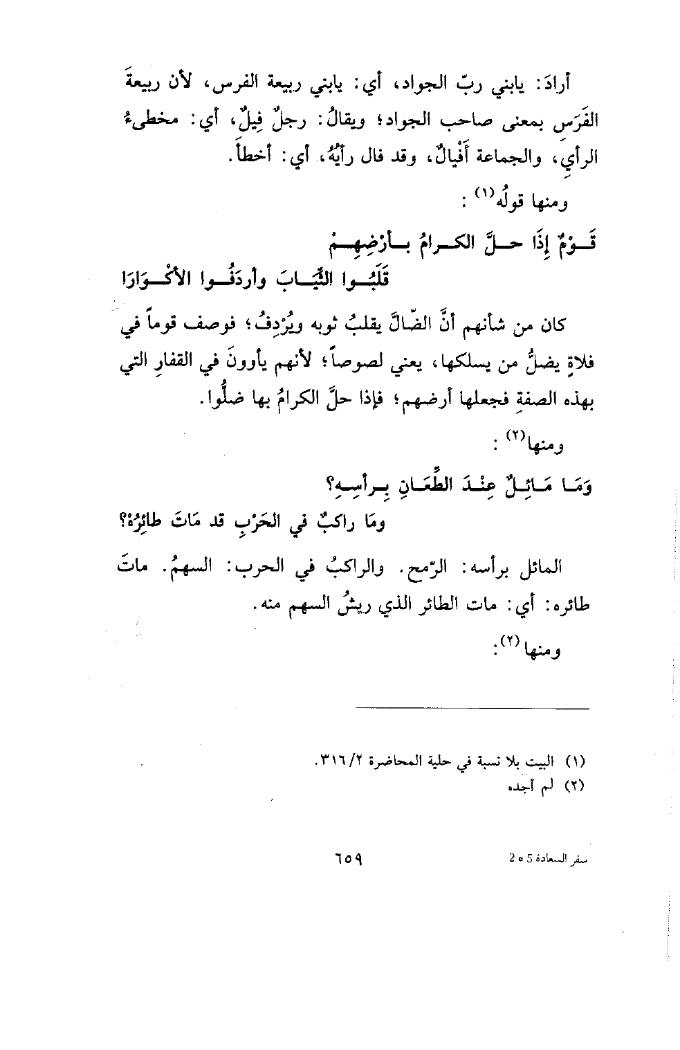 وما مائل عند الطعان برأسه؟ .... وما راكب في الحرب قد مات طائره؟