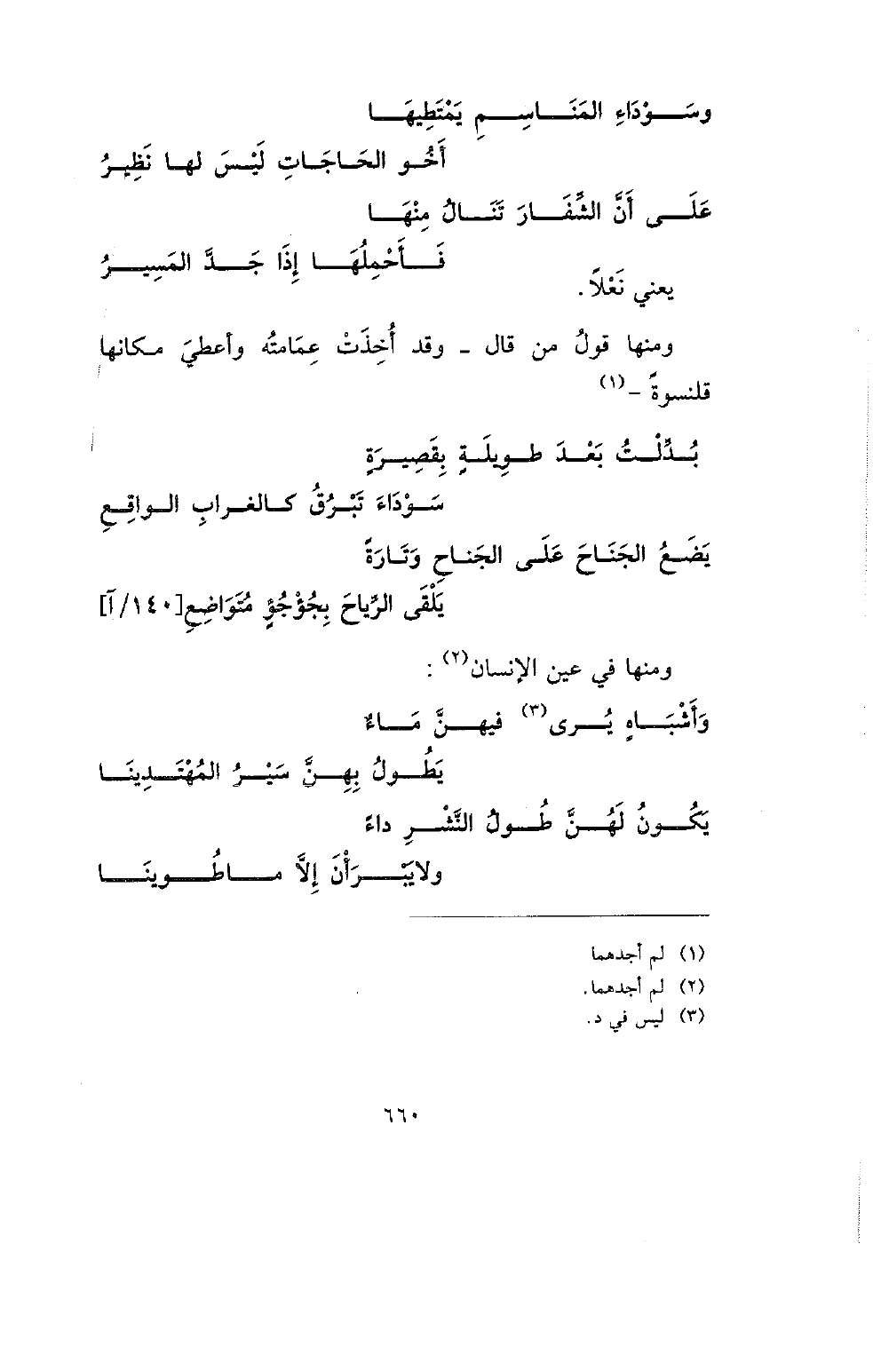 وسوداء المناسم يمتطيها .... أخو الحاجات ليس لها نظير