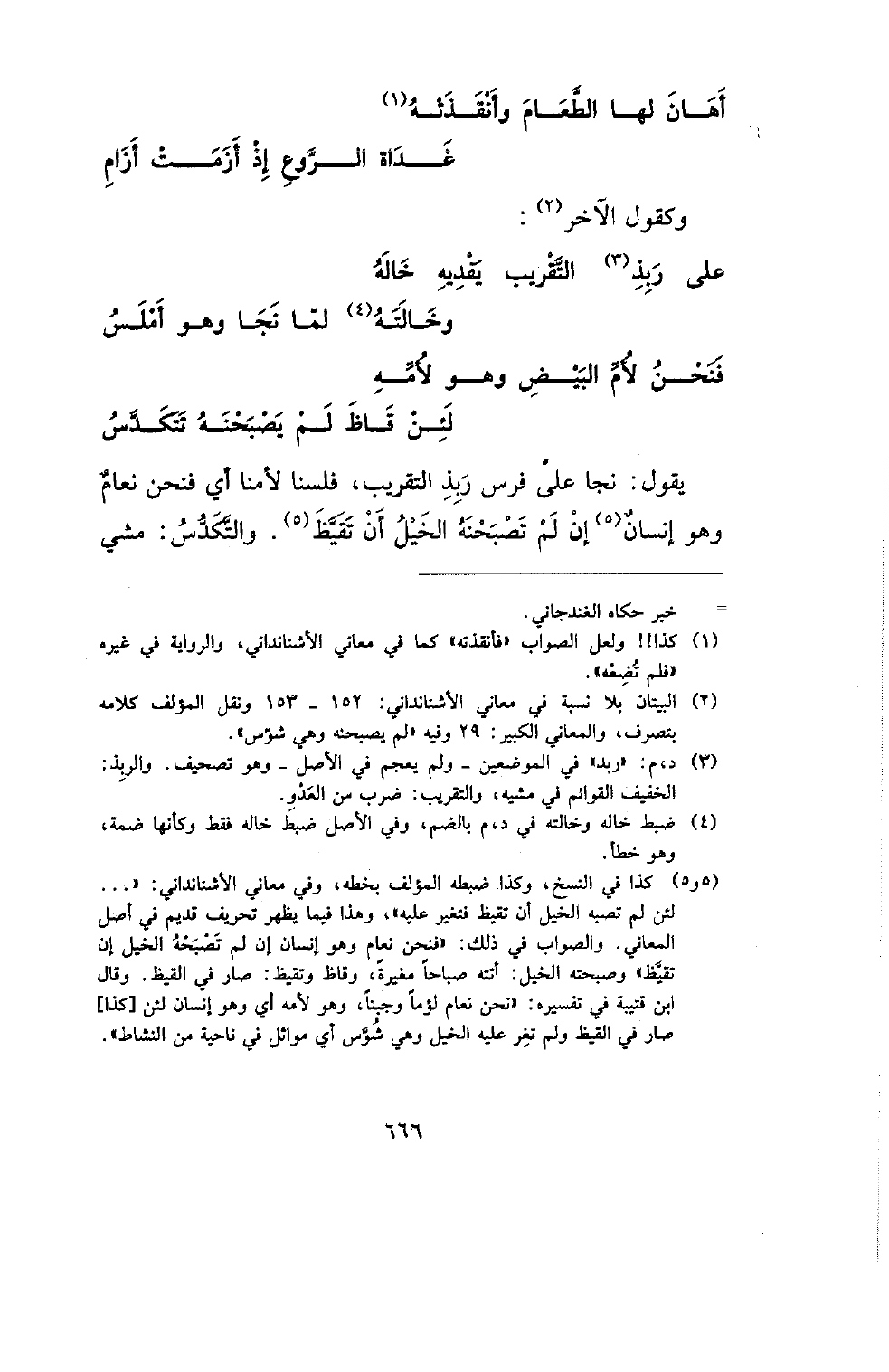 يقول: نجا على فرس ربذ التقريب، فلسنا لأمنا أي فنحن نعام وهو إنسان إن لم تصحبنه الخيل أن تقيظ. والتكدس: مشي