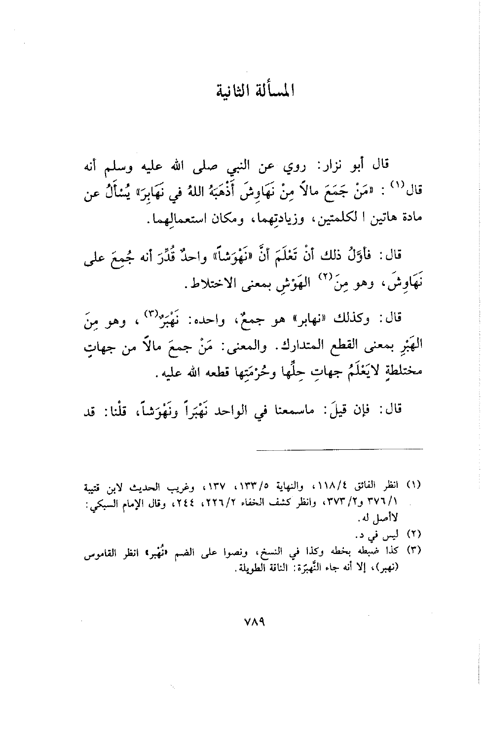 قال أبو نزار: روي عن النبي صلى الله عليه وسلم أنه قال: (من جمع مالا من نهاوش أذهبه الله في نهابر) يسأل عن مادة هاتين الكلمتين، وزيادتهما، ومكان استعمالهما.