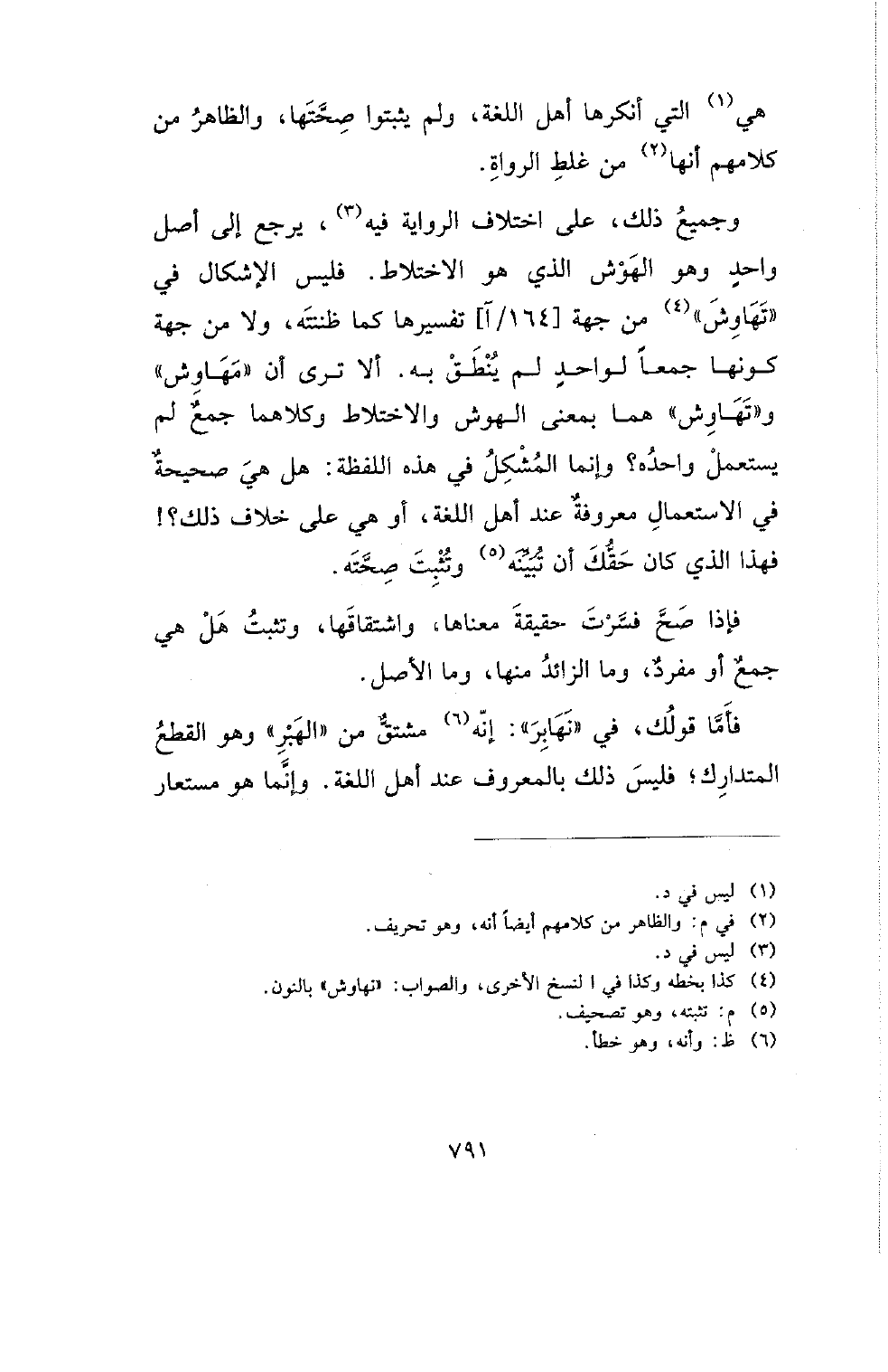 وجميع ذلك، على اختلاف الرواية فيه، يرجع إلى أصل واحد وهو النهوش الذي هو الاختلاط. فليس الإشكال في (تهاوش) من جهة [164/آ] تفسيرها كما ظننته، ولا من جهة كونها جمعا لواحد لم ينطق به. ألا ترى أن (مهاوش) و (تهاوش) هما بمعنى الهوش والاختلاط وكلاهما جمع لم يستعمل واحده؟ وإنما المشكل في هذه اللفظة: هل هي صحيحة في الاستعمال معروفة عند أهل اللغة، أو هي على خلاف ذلك؟! فهذا الذي كان حقك أن تبينه وتثبت صحته.