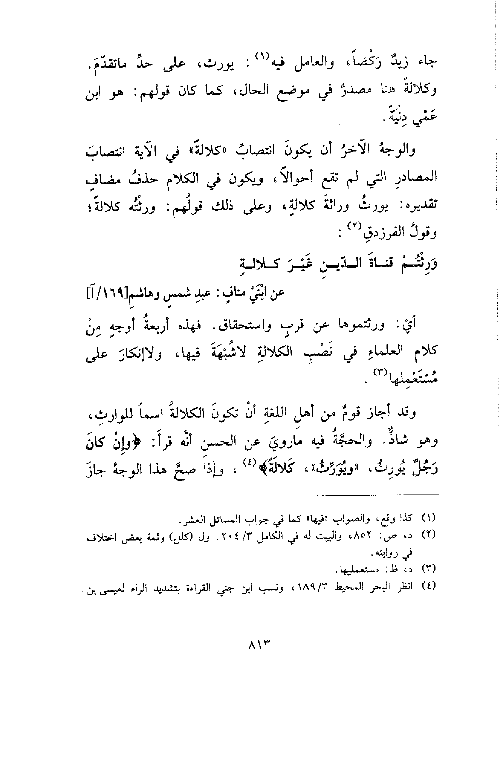 ورثتم قناة الدين غير كلالة .... عن ابني مناف: عبد شمس وهاشم [169/ آ]