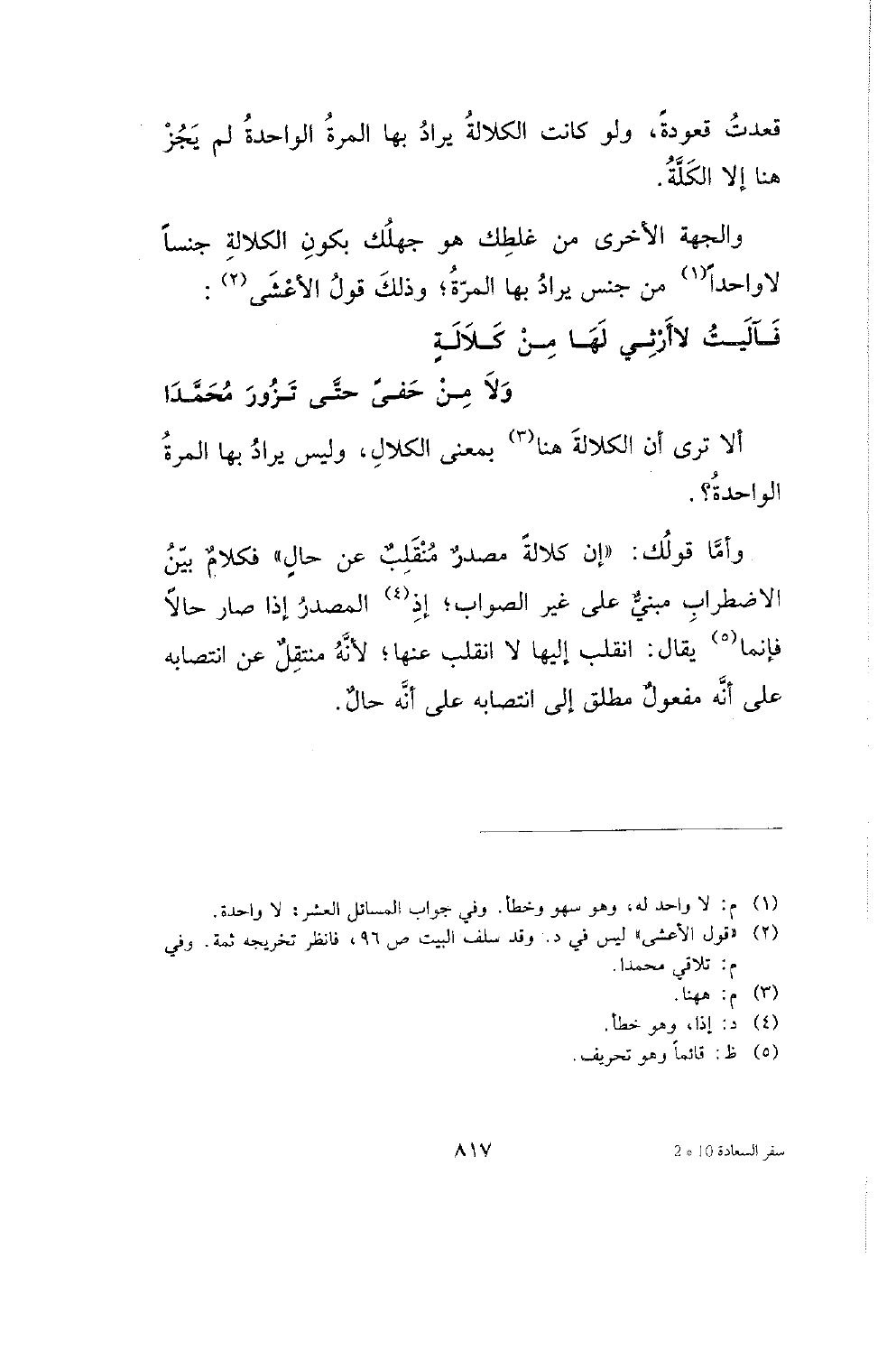 والجهة الأخرى من غلطك هو جهلك بكون الكلالة جنسًا لا واحدًا من جنس يراد بها المرة؛ وذلك قول الأعشى: