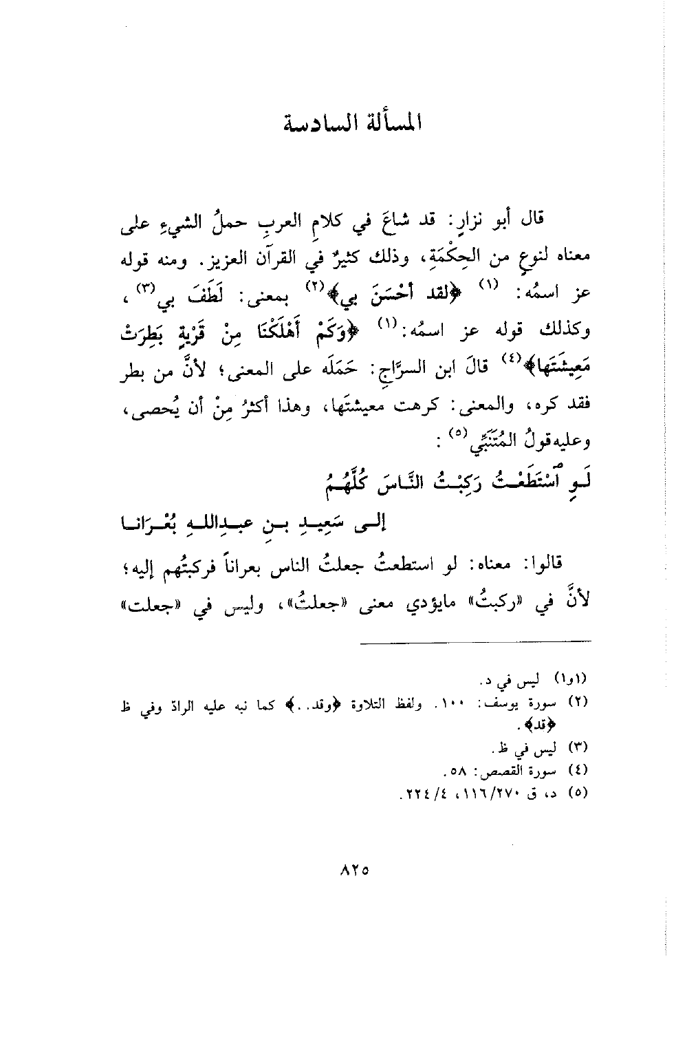 قال أبو نزار: قد شاع في كلام العرب حمل الشيء على معناه لنوع من الحكمة، وذلك كنير في القرآن العزيز. ومنه قوله عز اسمه:} لقد أحسن بي {بمعنى: لطف بي، وكذلك قوله عز اسمه:} وكم أهلكنا من قرية بطرت معيشتها {قال ابن السراج: حمله على المعنى؛ لأن من بطر فقد كره، والمعنى: كرهت معيشتها، وهذا أكثر من أن يحصى، وعليه قول المتنبي:
