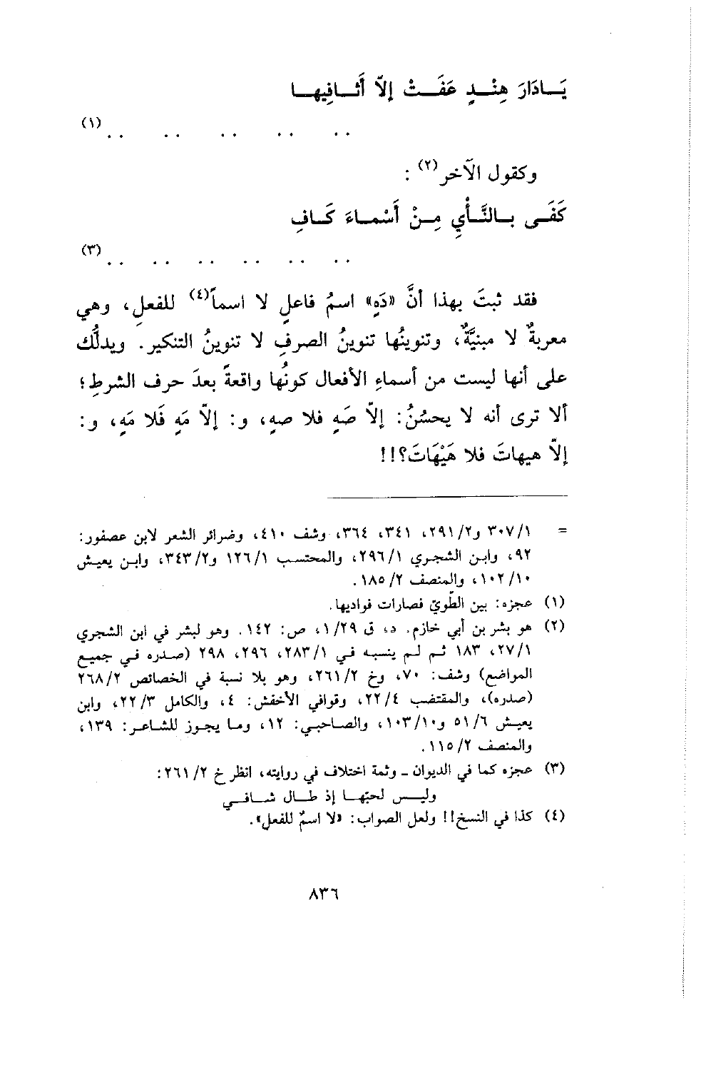فقد ثبت بهذا أن (ده) اسم فاعل لا اسمًا للفعل، وهي معربة لا مبنية، وتنوينها تنوين الصرف لا تنوين التنكير. ويدلك على أنها ليست من أسماء الأفعال كونها واقعة بعد حرف الشرط؛ ألا ترى أنه لا يحسن: إلا صه فلا صه، و: إلا مه فلا مه، و: إلا هيهات فلا هيهات؟!!