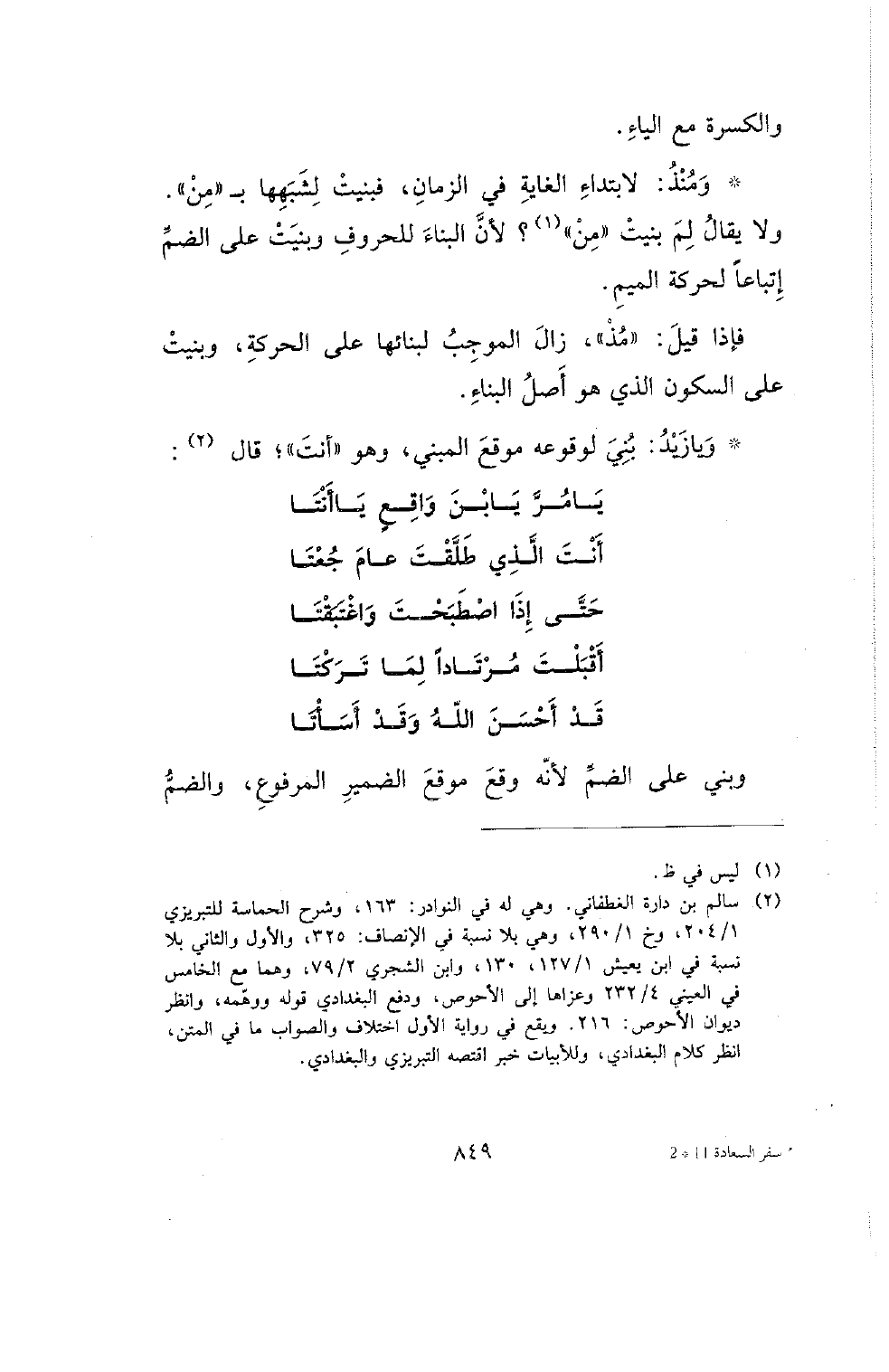 ولا يقال لم بنيت (من)؟ لأن البناء للحروف وبنيت على الضم إتباعًا لحركة الميم.