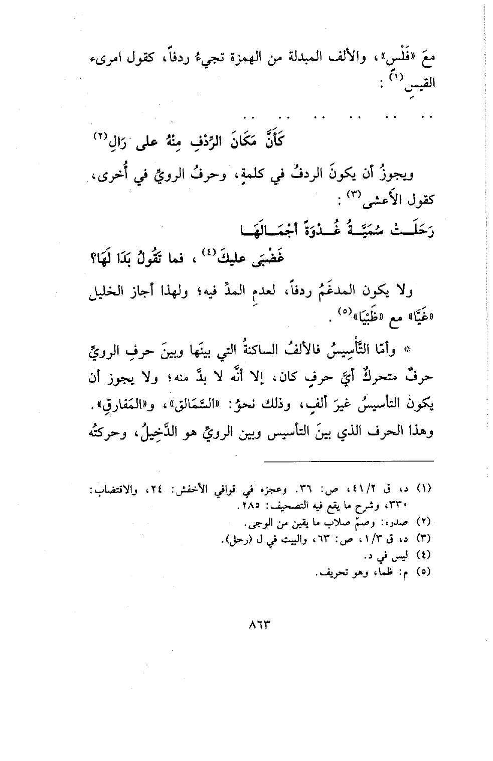 مع (فلس)، والألف المبدلة من الهمزة تجيء ردفًا، كقول امرئ القيس: