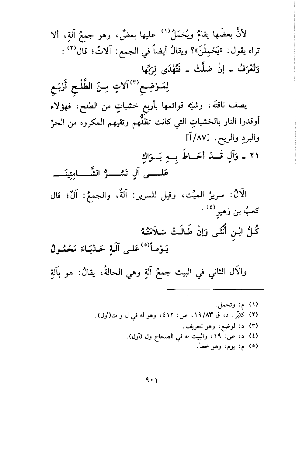 والآل الثاني في البيت جمع آلة وهي الحالة، يقال: هو بآلة
