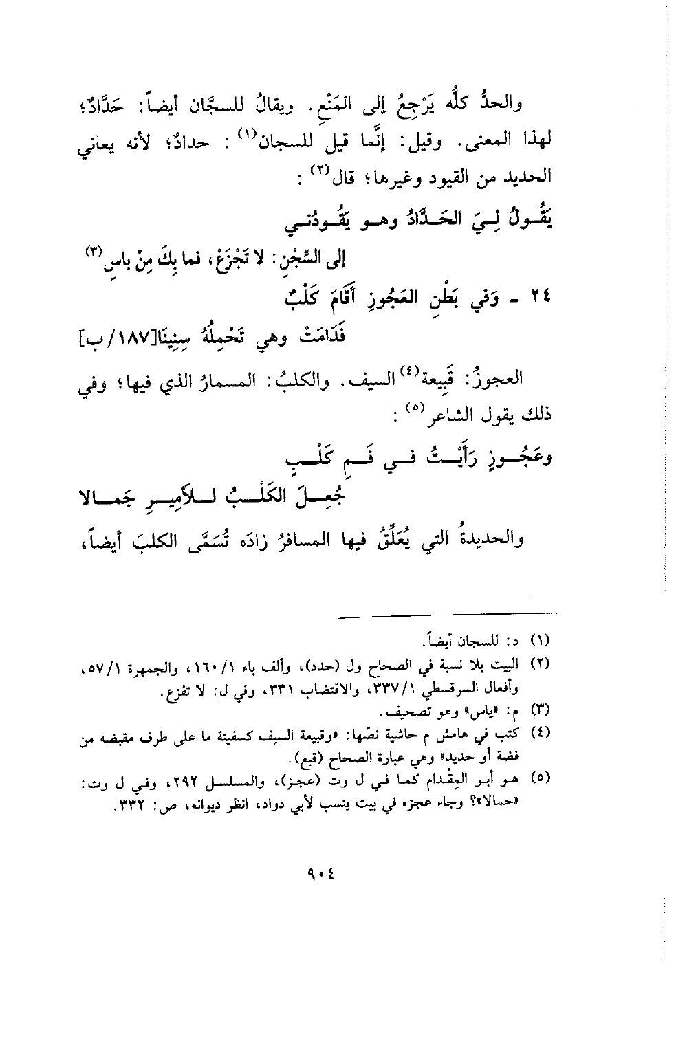 العجوز: قبيعة السيف. والكلب: المسمار الذي فيها، وفي ذلك يقول الشاعر: