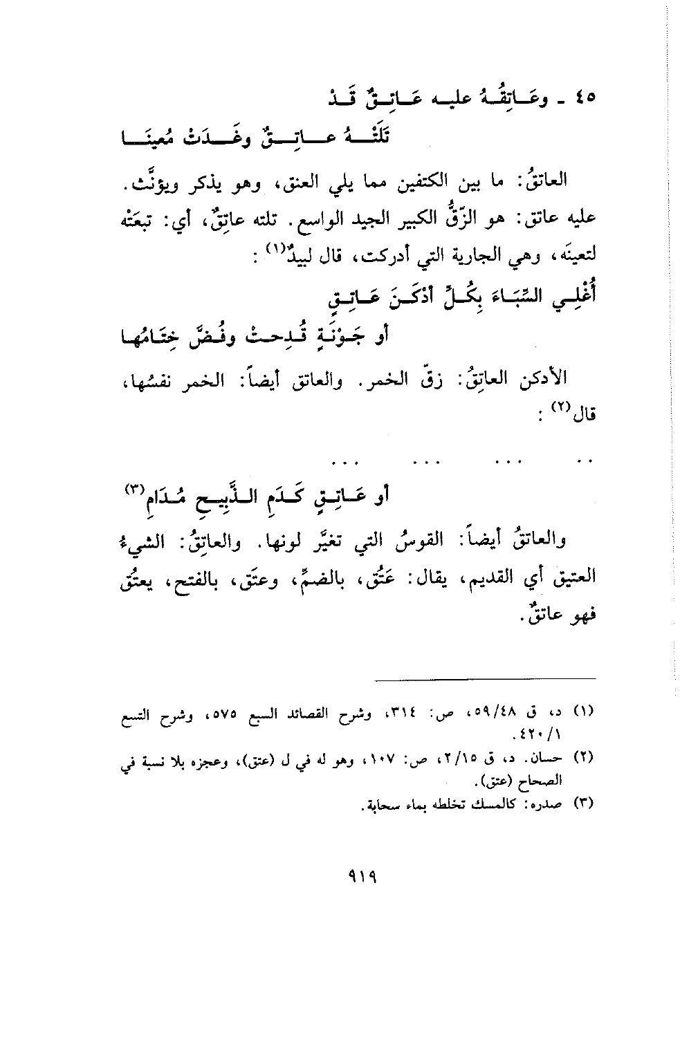 45 - وعاتقه عليه عاتق قد .... تلته عاتق وغدت معينا