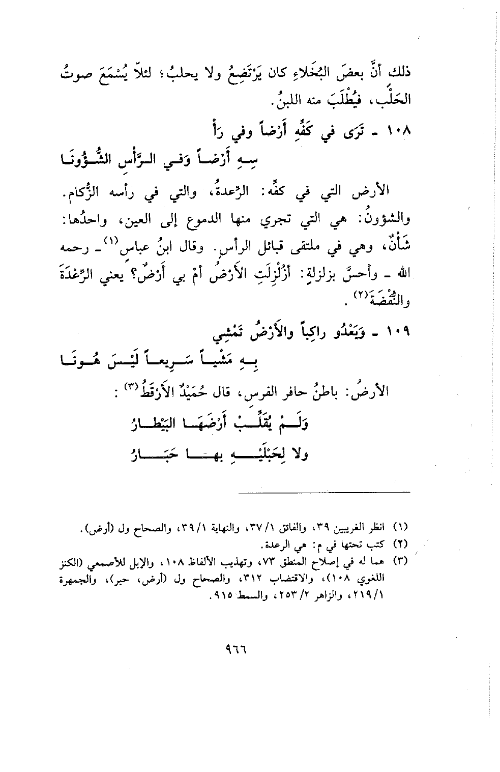 108 - ترى في كفه أرضا وفي رأ .... سه أرضا وفي الرأس الشؤونا