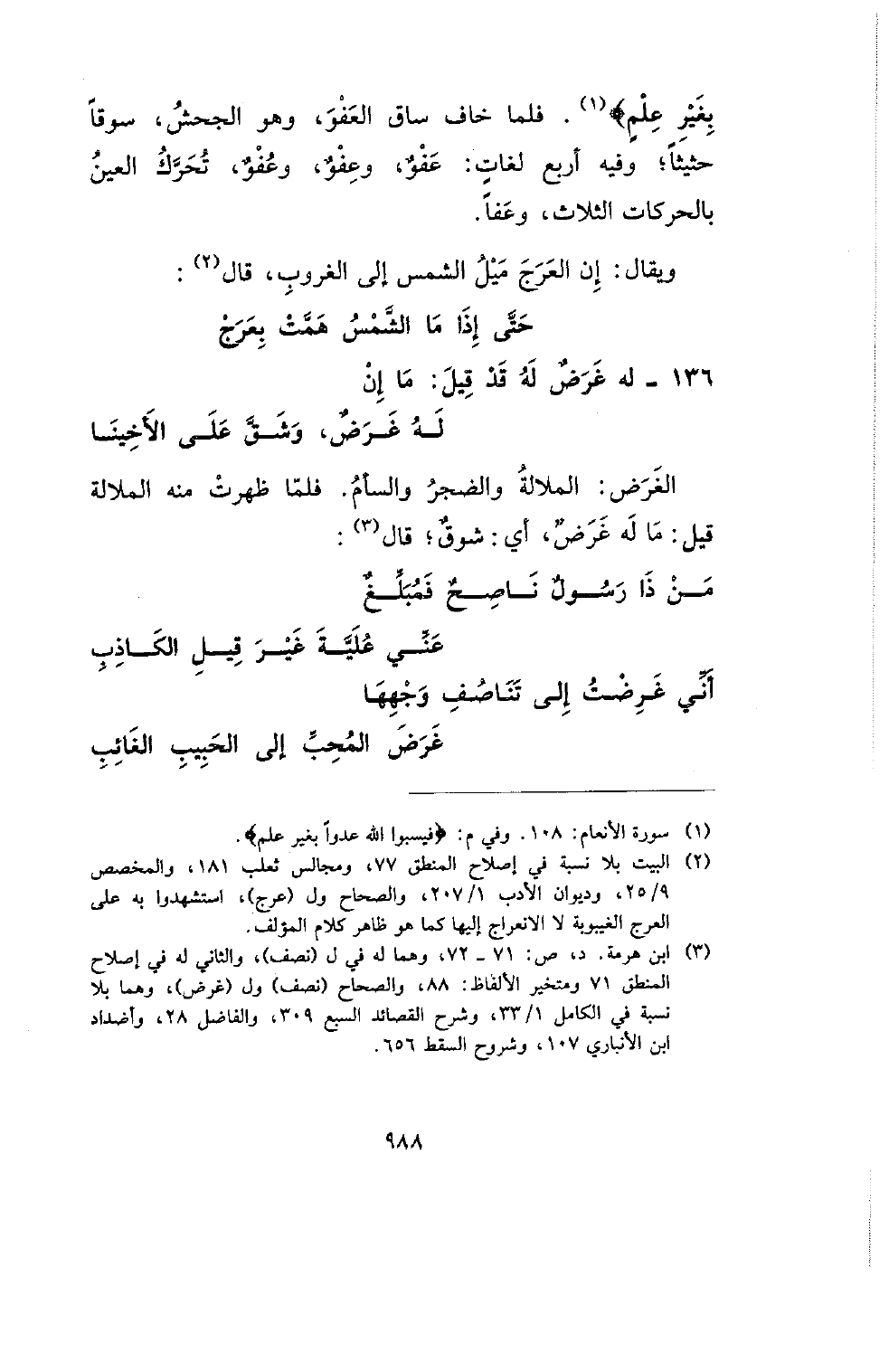 ويقال: إن العرج ميل الشمس إلى الغروب، قال: