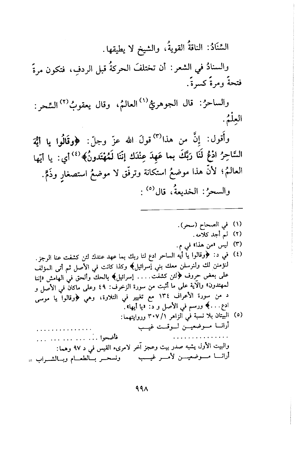 والسناد في الشعر: أن تختلف الحركة قبل الردف، فتكون مرة فتحة ومرة كسرة.
