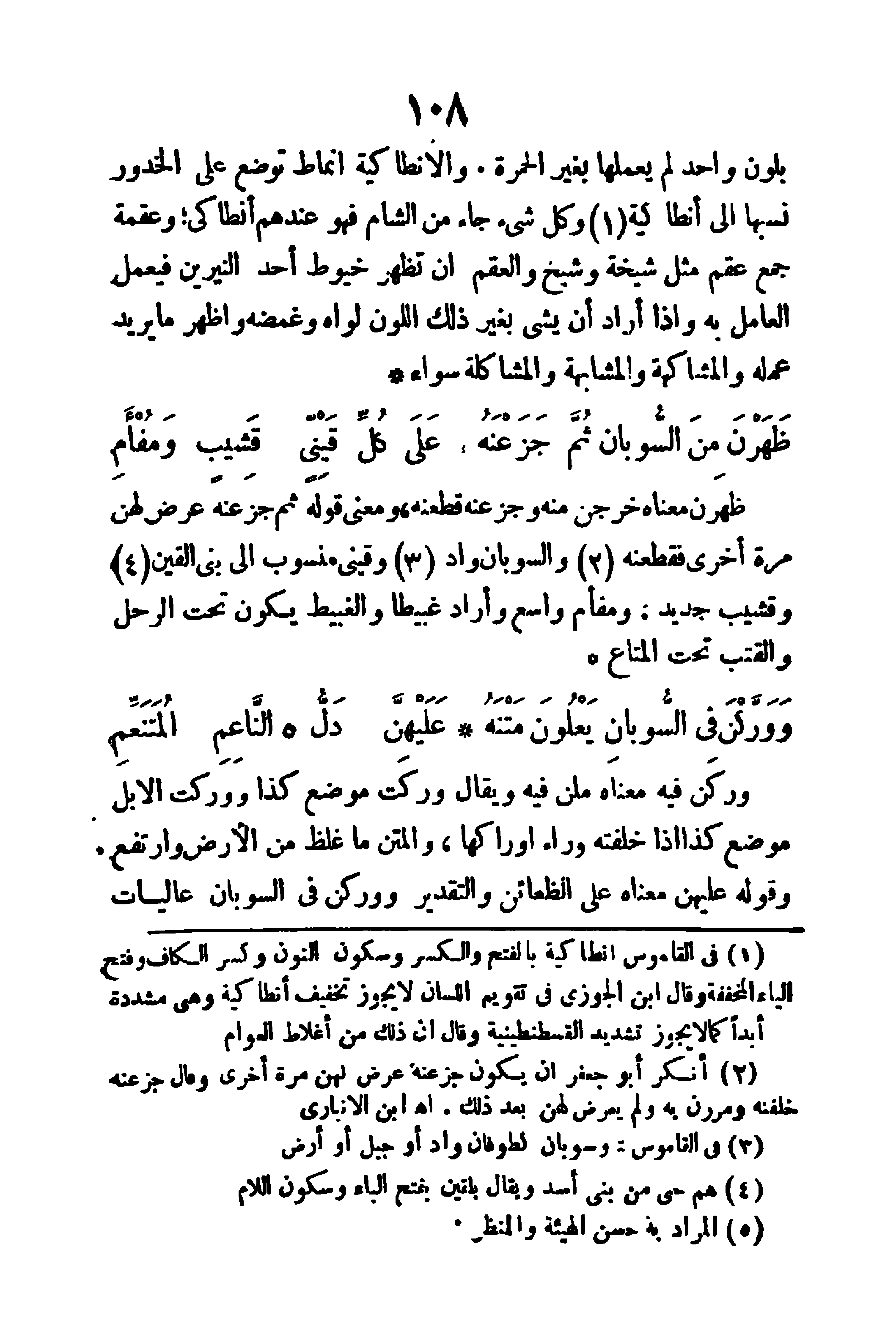 ظهرن: معناه خرجن منه، وجزعنه: قطعنه، ومعنى قوله: (ثم جزعنه) عرض لهن مرة أخرى فقطعنه، والسوبان: واد وقيني: منسوب إلى بني القين وقشيب: جديد، ومفأم: واسع، وأراد غبيطا، والغبيط يكون تحت الرحل والقتب تحت المتاع.