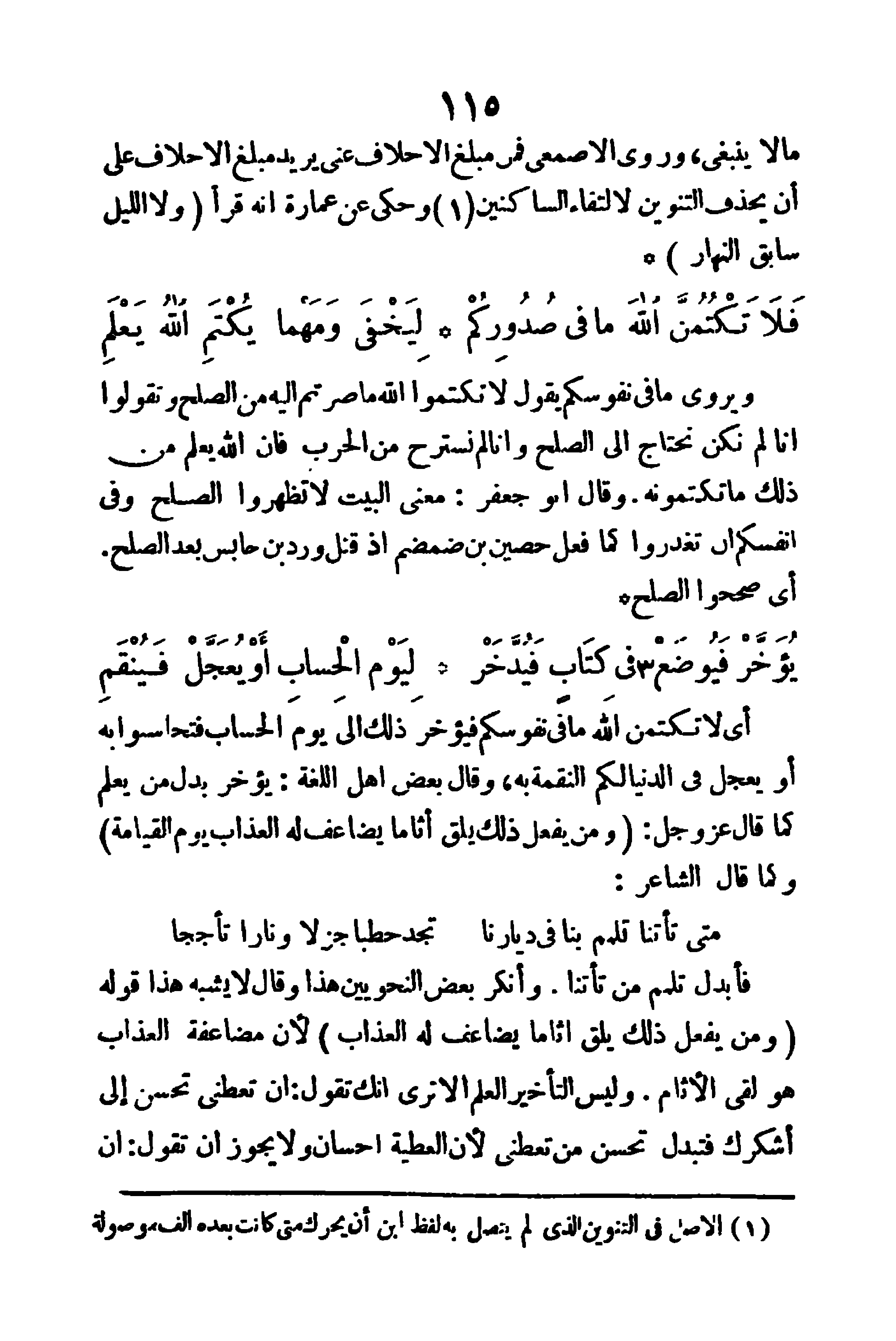 ما لا ينبغي، وروى الأصمعي (فمن مبلغ الأحلاف عنى) يريد مبلغ الأحلاف، على أن يحذف التنوين لالتقاء الساكنين، وحكى عن عمارة إنه قرأ (وَلاَ الليلُ سَابِقُ النّهَارَ).