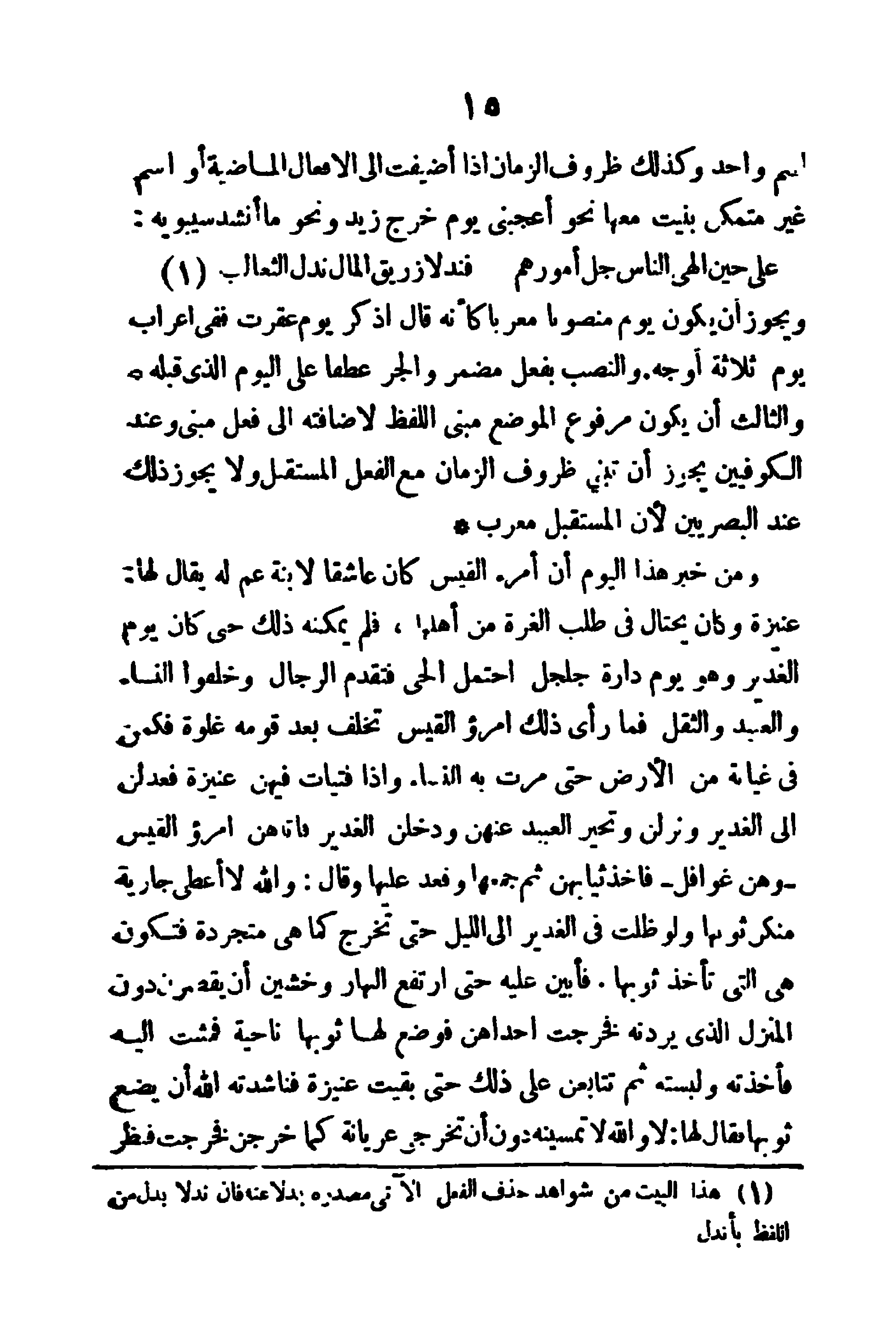 اسم واحد، وكذلك ظروف الزمان إذا أضيفت إلى الأفعال الماضية أو اسم غير متمكن بنيت معها، نحو (أعجبني يوم خرج زيد) ونحو ما أنشد سيبويه: