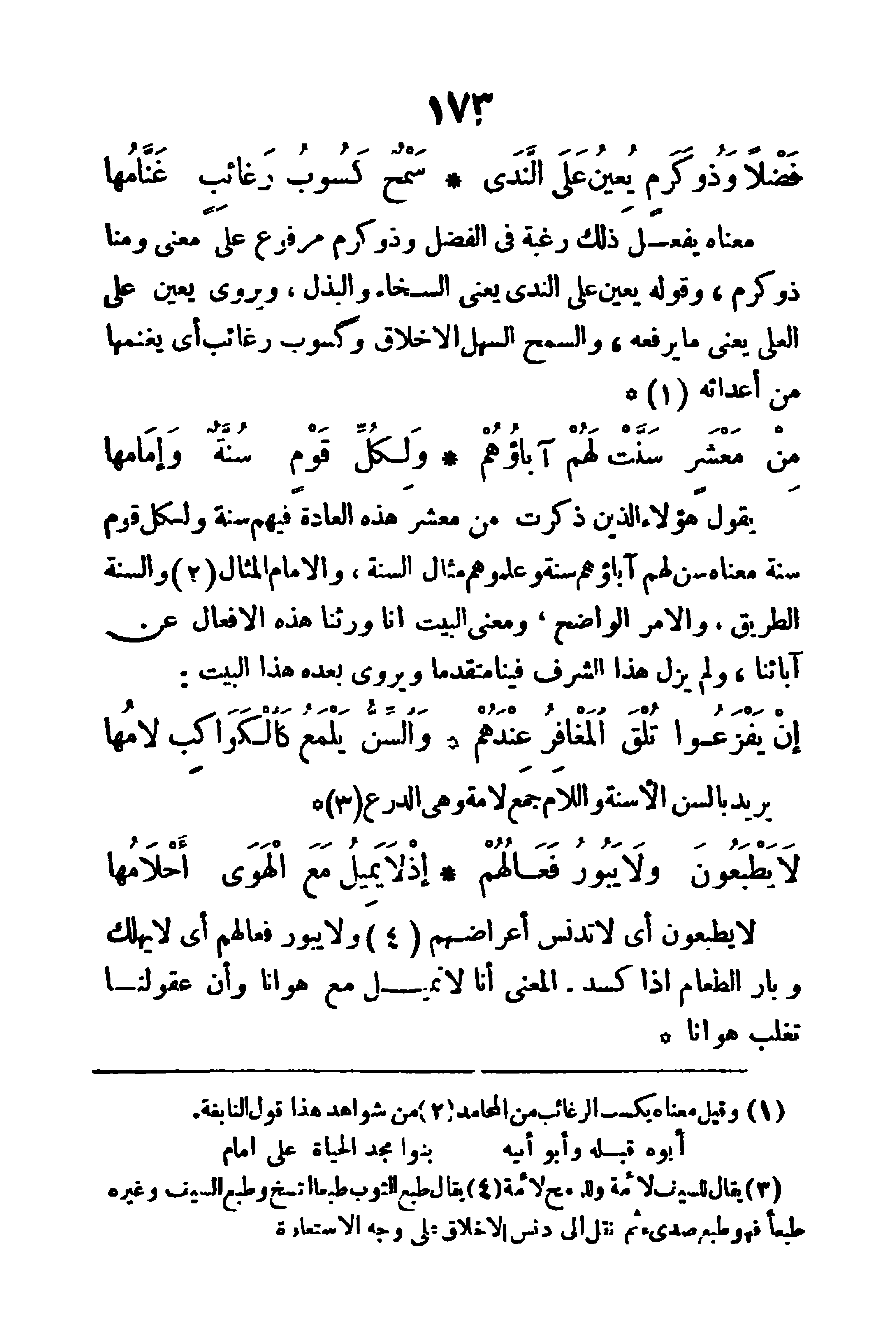 (مِنْ مَعْشَرٍ سَنَّتْ لَهُمْ آبَاؤُهُمْ ... وَلِكُلِّ قَوْمٍ سُنَّةٌ وَإِمَامُهَا)
