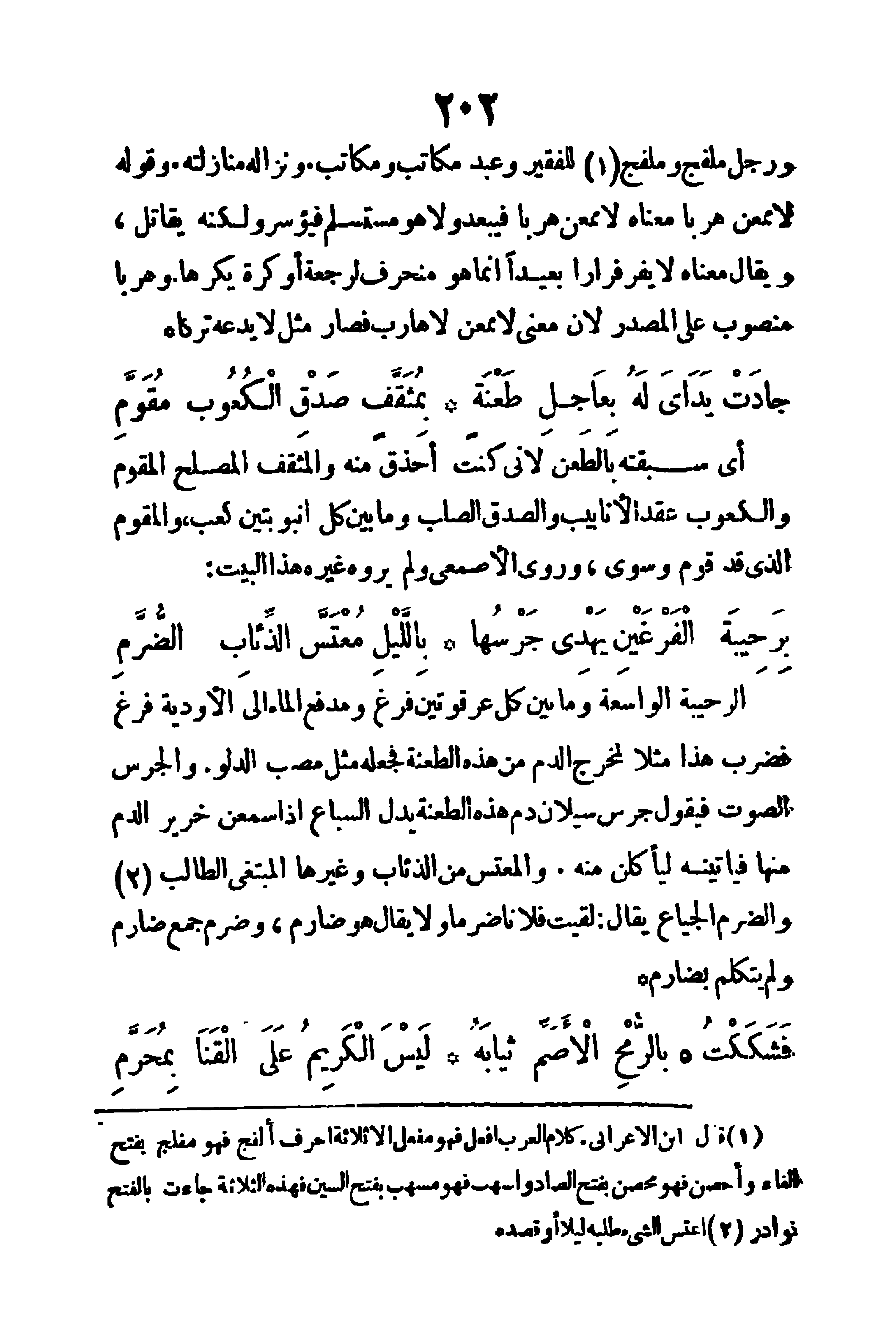 (فَشَكَكْتُ بِالرُّمْحِ الاصَمِّ ثِيابَهُ ... لَيْسَ الكَرِيمُ عَلَى القَنَا بِمُحَرَّمِ)
