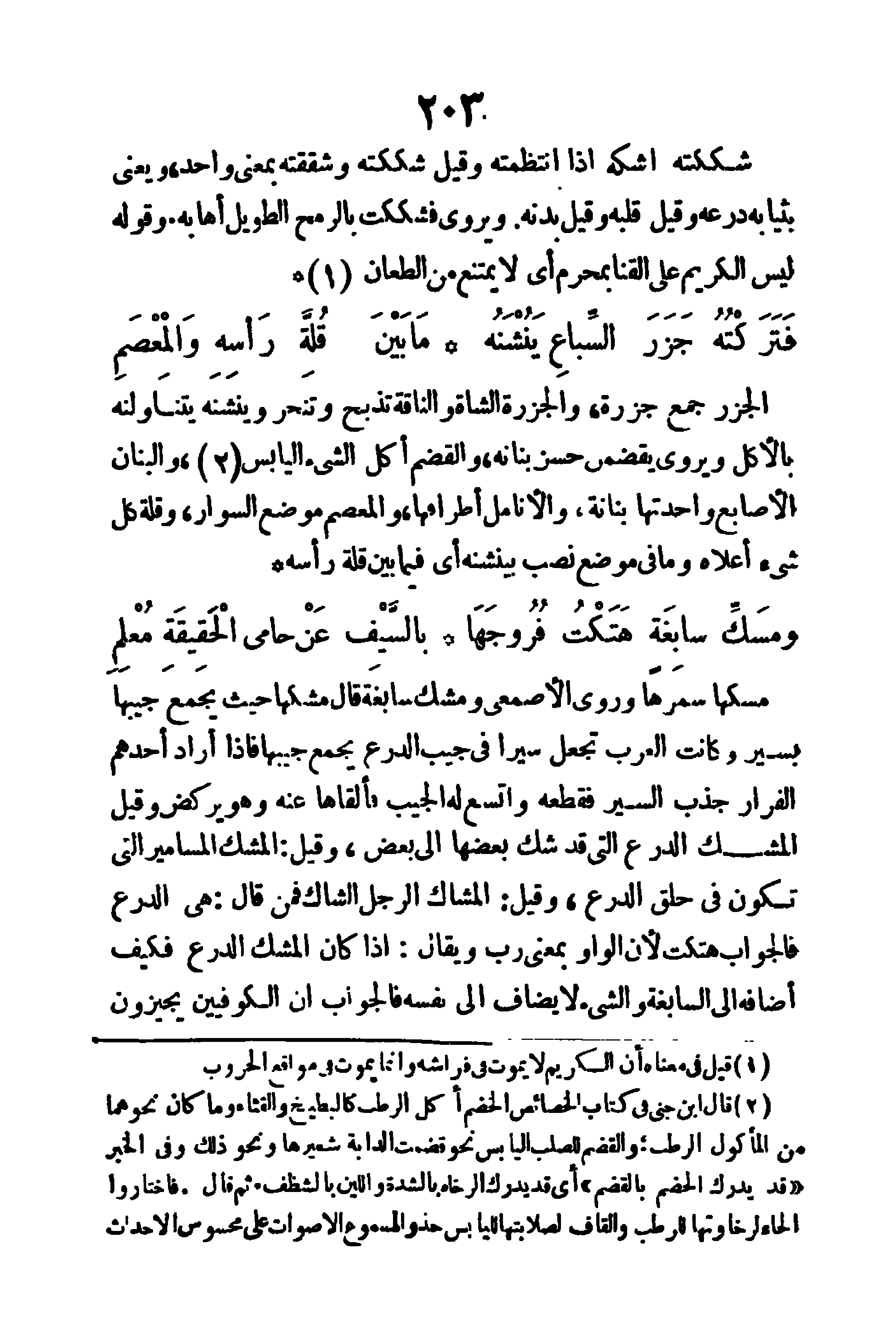 (شككته أشكه) إذا انتظمته، وقيل: شككته وشققته بمعنى واحد، ويعنى بثيابه درعه، وقيل: قلبه: وقيل: بدنه، ويروى (فشككت بالرمح الطويل إهابه) وقوله (ليس بالكريم على القنا بمُحرم) أي لا يمتنع من الطعان