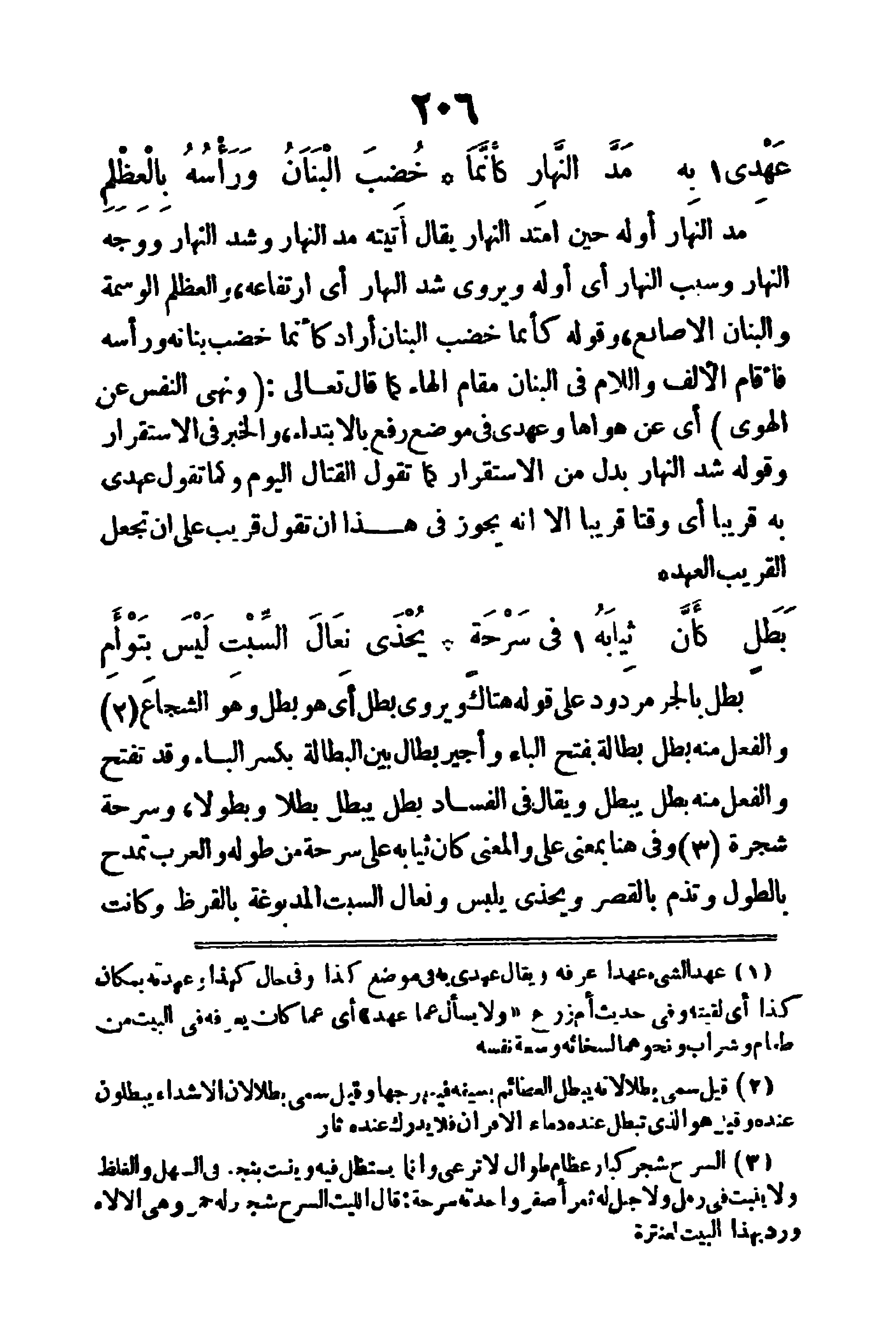 وسبب النهار، أي أوله، ويروى (شدَّ النهار) أي ارتفاعه، والعظلم: الوسمة، والبنان: الأصابع، وقوله (كأنما خضب البنان) أراد كأنما خضب بنانه ورأسه، فأقام الألف واللام في (البنان) مقام الهاء، كما قال تعالى: (وَنَهَى النَّفْسَ عَنِ الهَوَى) أي عن هواها، وعهدي: في موضع رفع بالابتداء، والخبر في الاستقرار، وقوله (شدَّ النهار) بدل من الاستقرار كما تقول: القتال اليوم، وكما تقول: عهدي به قريبا، أي وقتا قريبا، إلا إنه يجوز في هذا أن تقول: قريب، على أن تجعل القريب العهد.