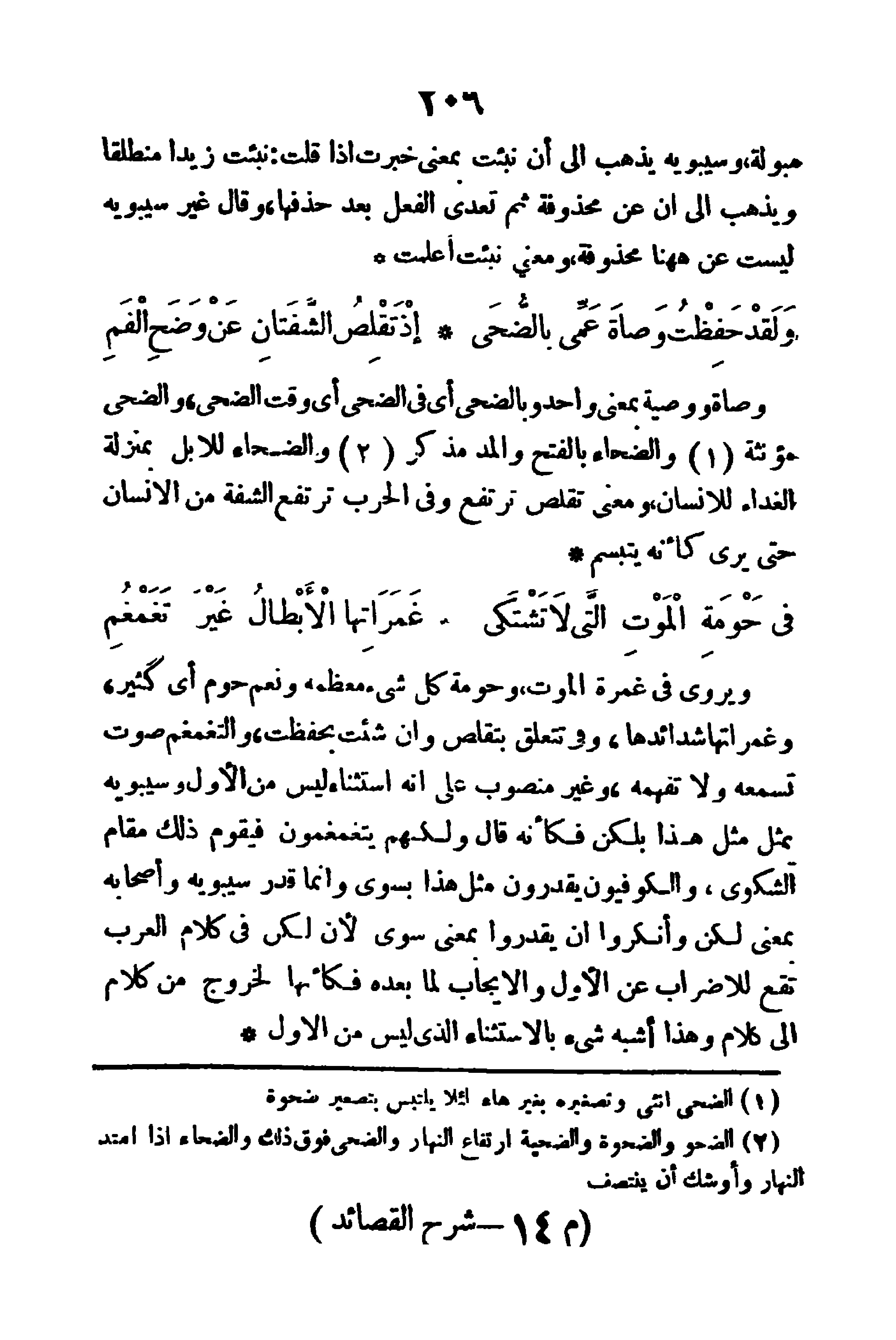 وصاة ووصية بمعنى واحد، و (بالضحى) أي وقت الضحى، والضُّحى مؤنثة، والضحاء - بالفتح والمد - مذكر والضحاء للإبل بمنزلة الغداء للإنسان، ومعنى (تقلص) ترتفع، وفي الحرب ترتفع الشفة من الإنسان حتى يُرى كأنه يتبسم.