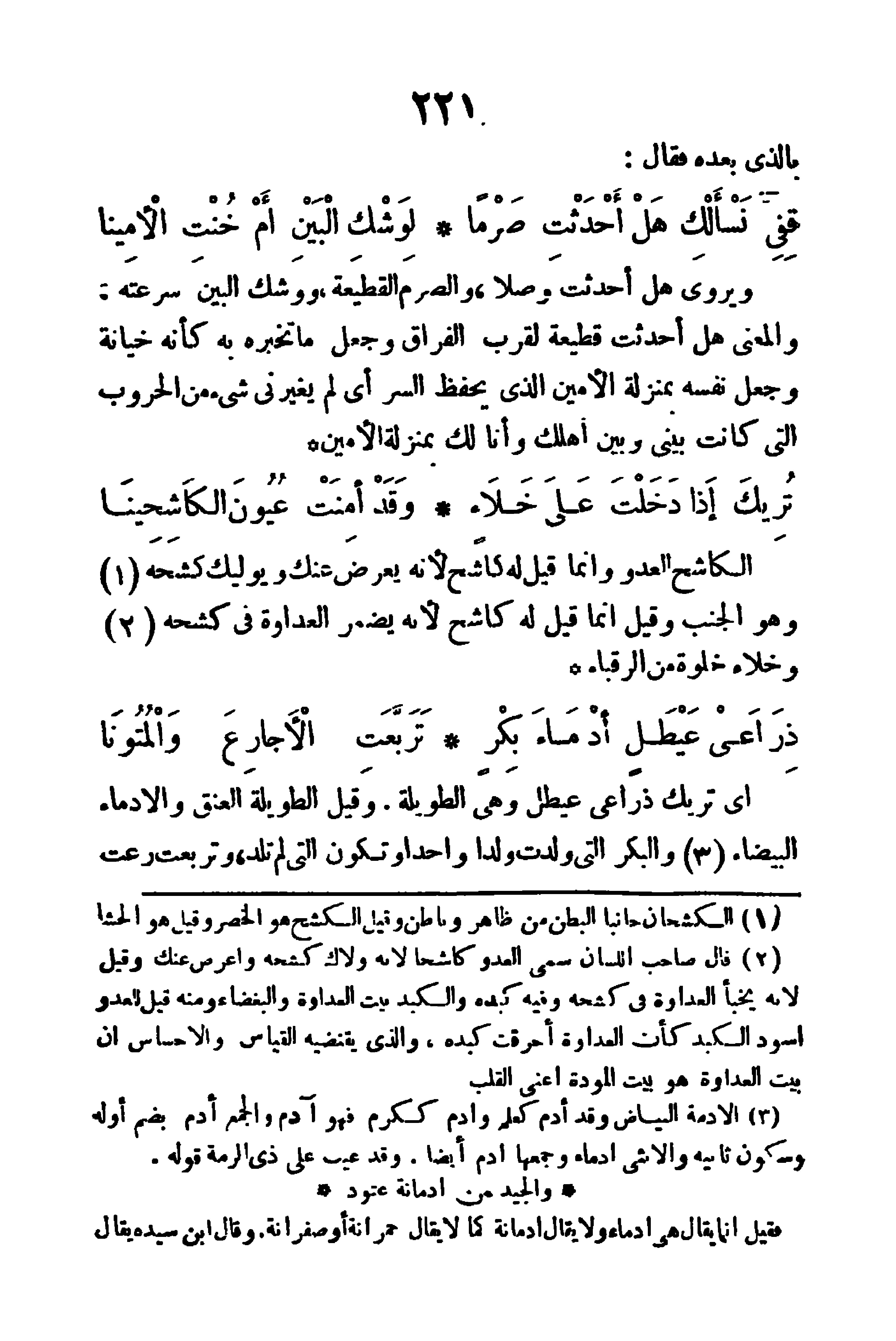 (قِفِي نَسْأَلْكِ هَلْ أَحْدَثْتِ صُرْمَا ... لِوَشْكِ البَيْنِ أَمْ خُنْتِ الأمِينَا)