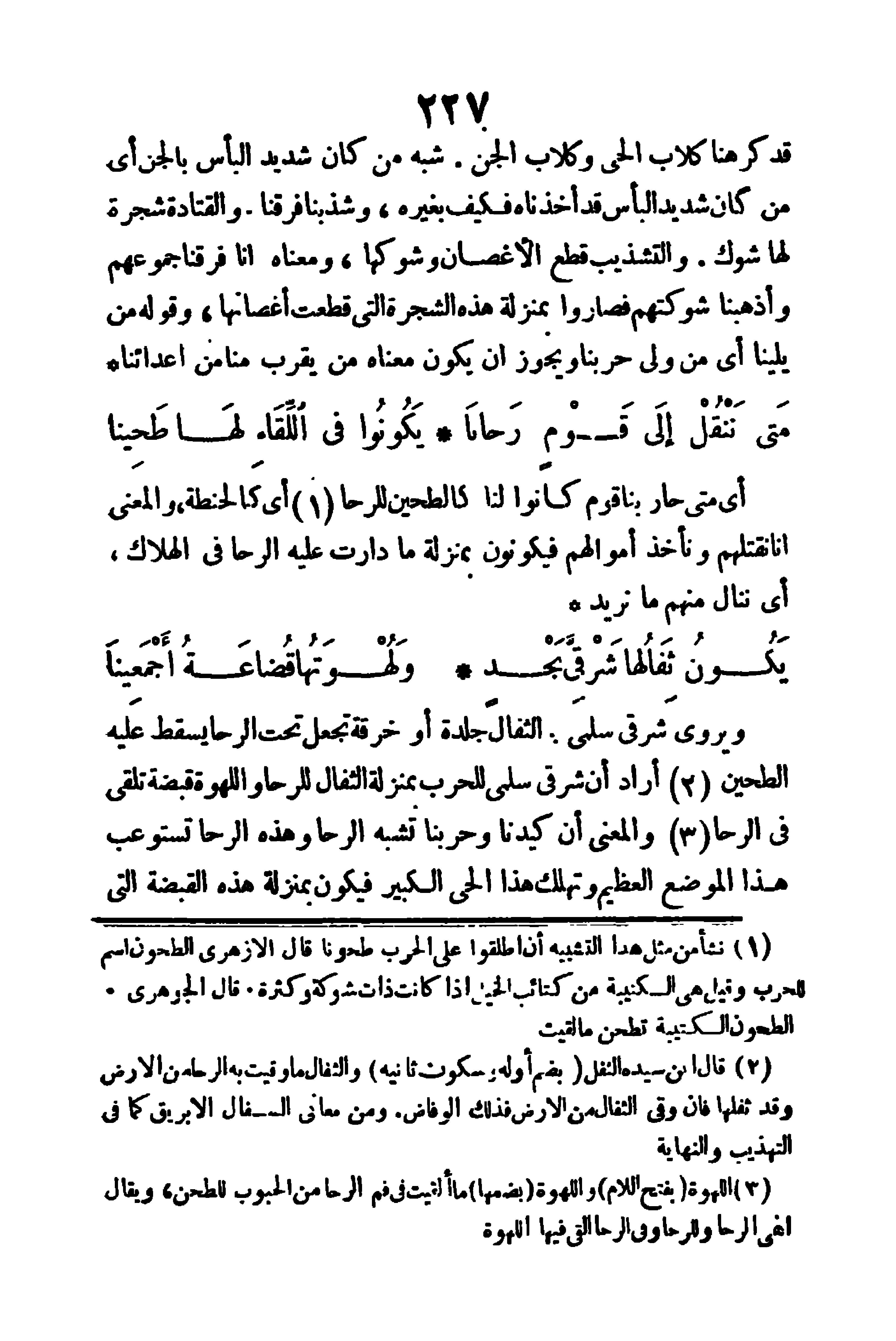(مَتَى نَنْقُلْ إلى قَوْمٍ رَحَانَا ... يَكُونُوا فيِ اللِّقَاءِ لها طَحِينَا)
