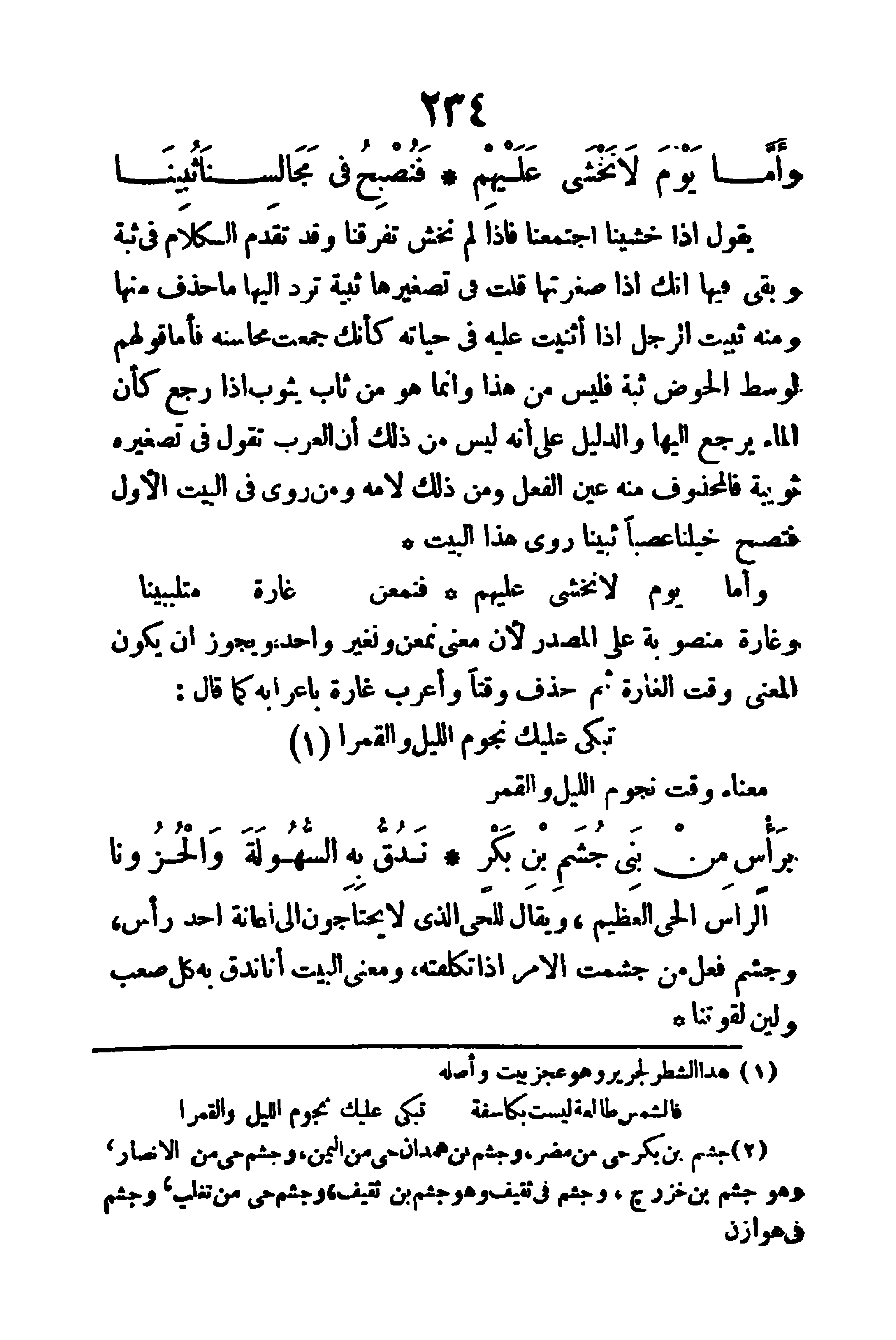 (وَأَمَّا يَوْمَ لاَ نَخَشَى عَلَيْهِمْ ... فَنُصْبِحُ فِي مَجَالِسِنَا ثُبِينَا)
