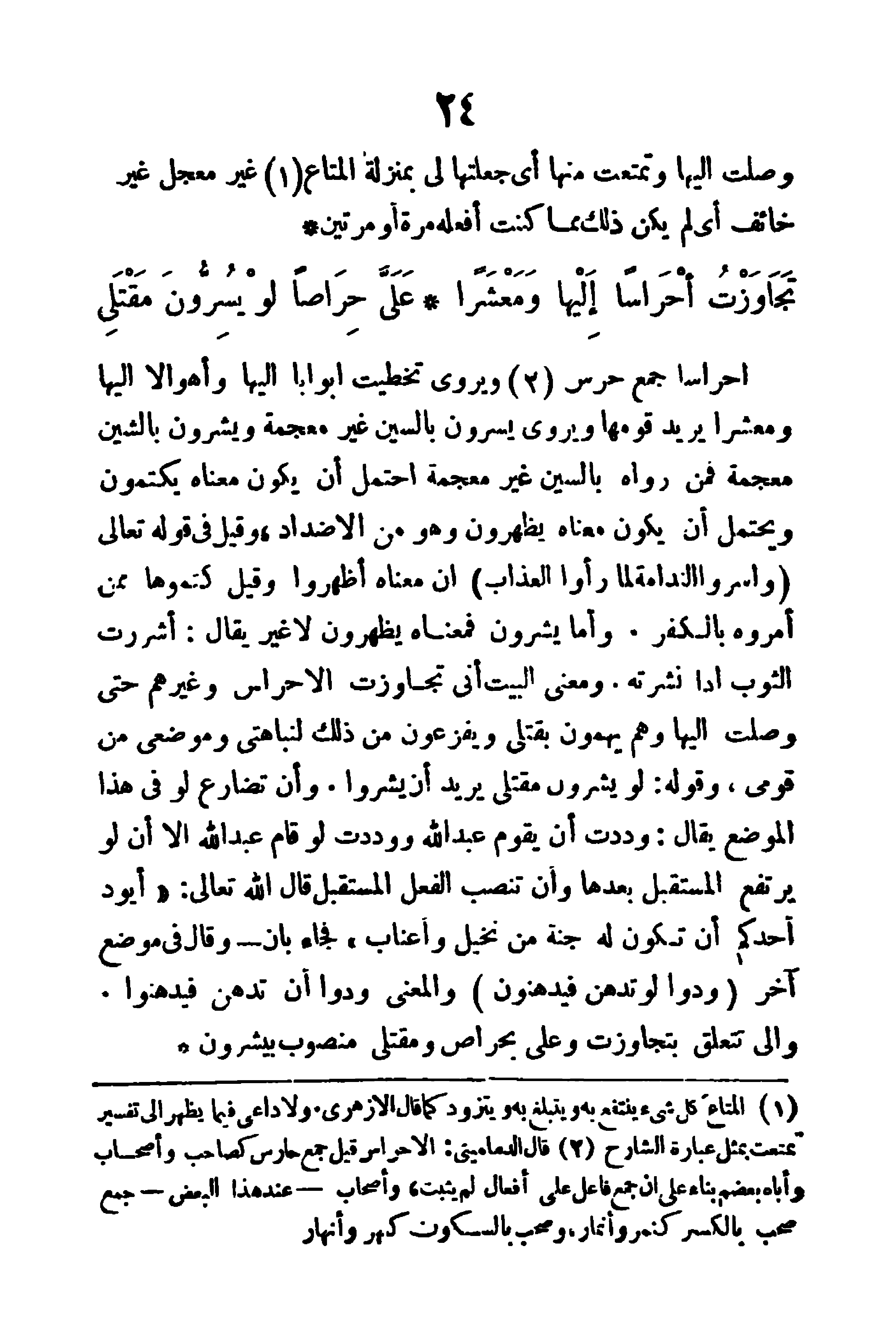 (تَجَاوَزْتُ أَحْرَاساً إليها وَمَعْشَراً ... عَلَىَّ حِرَاصاً لَوْ يُسِرُّونَ مَقْتَلِي)