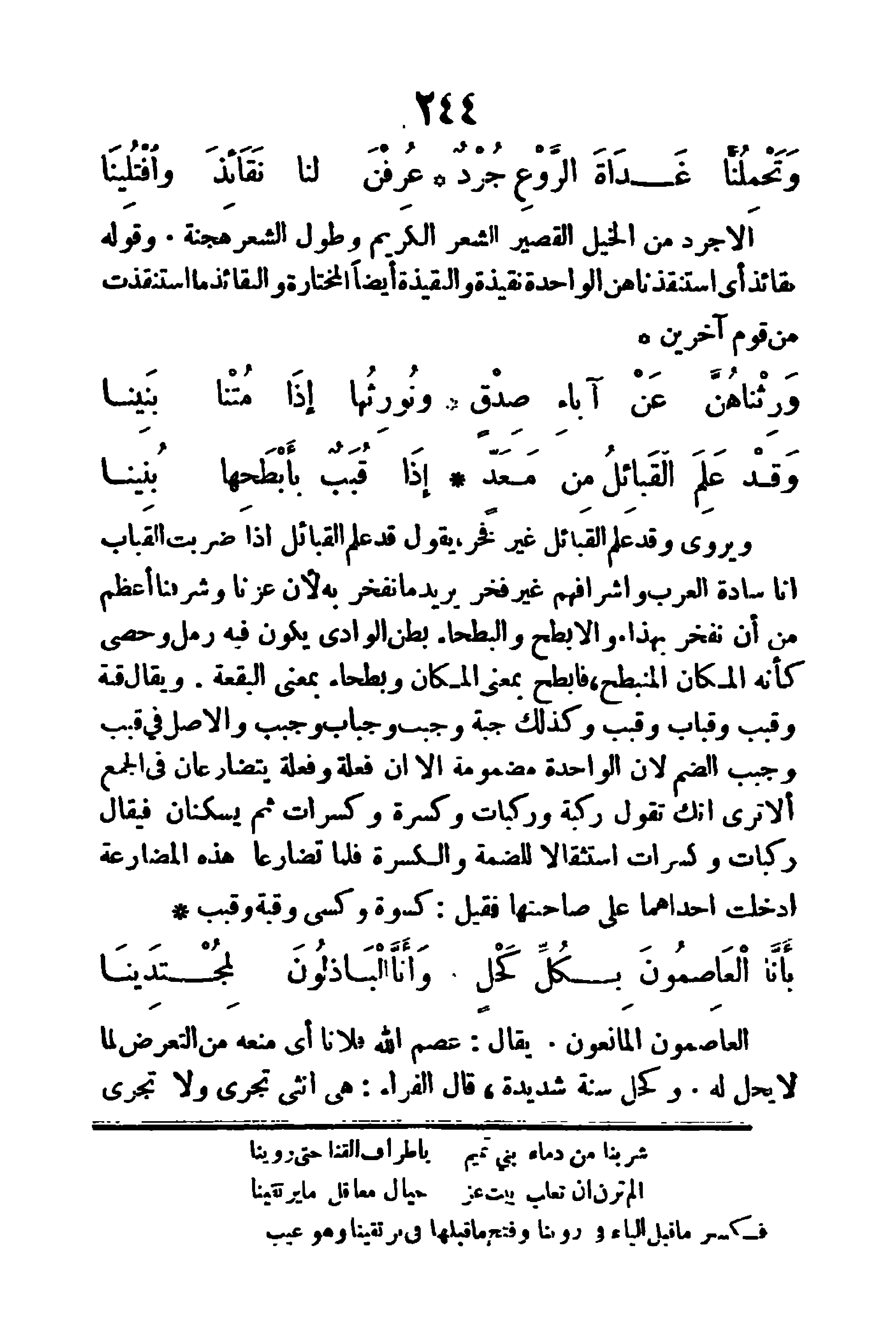 (بِأَنَّا العَاصِمُونَ بكل كَحْلٍ ... وأَنَّا البَاذِلُونَ لِمُجْتدِينَا)