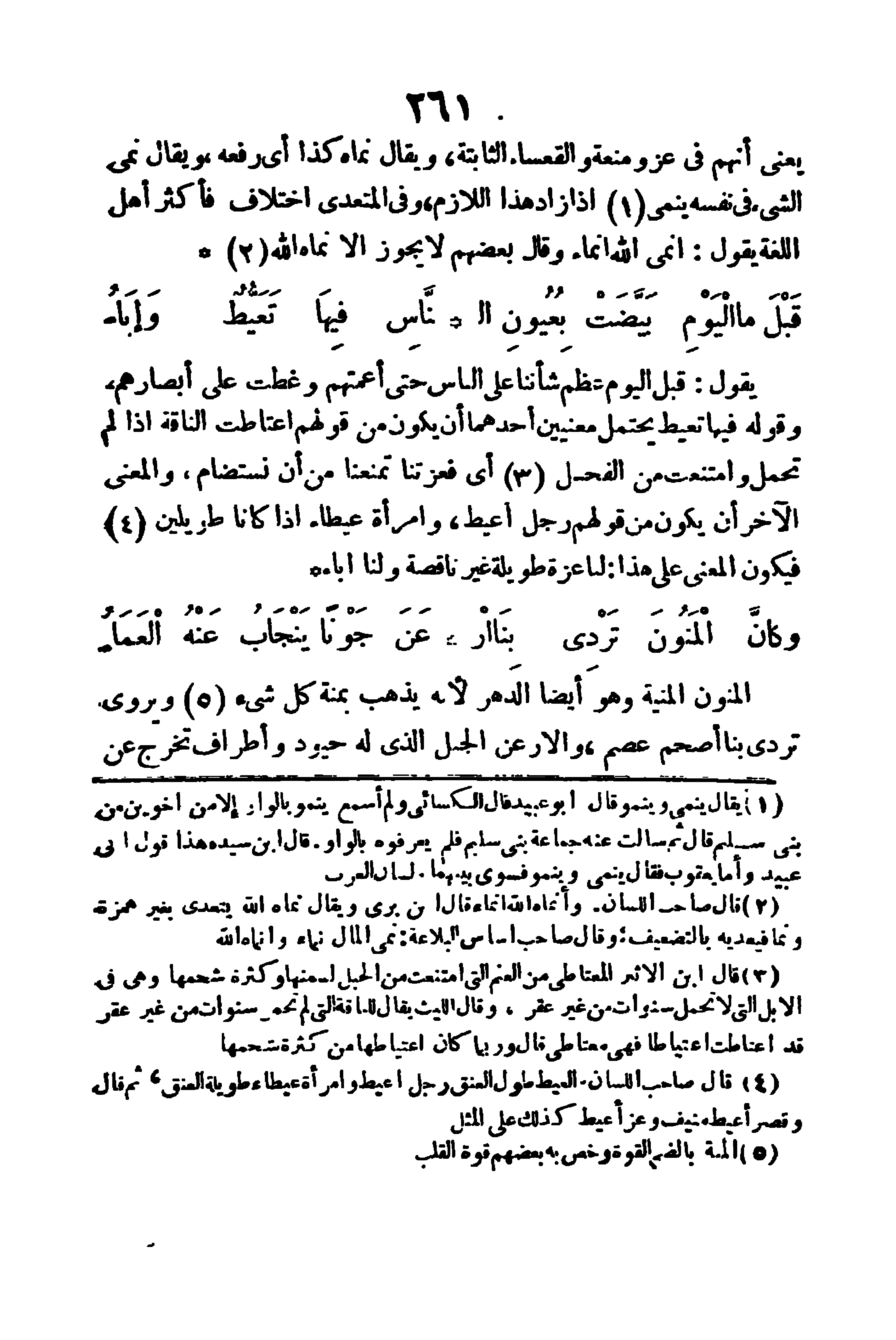 يعني أنهم في عز ومنعة، والقعساء: الثابتة، ويقال: نماه كذا، أي رفعه، ويقال (نمى الشيء في نفسه ينمى) إذا زاد، هذا اللازم، وفي المتعدى اختلاف، فأكثر أهل اللغة يقول: أنمى الله إنماء، وقال بعضهم: لا يجوز إلا نماه الله.