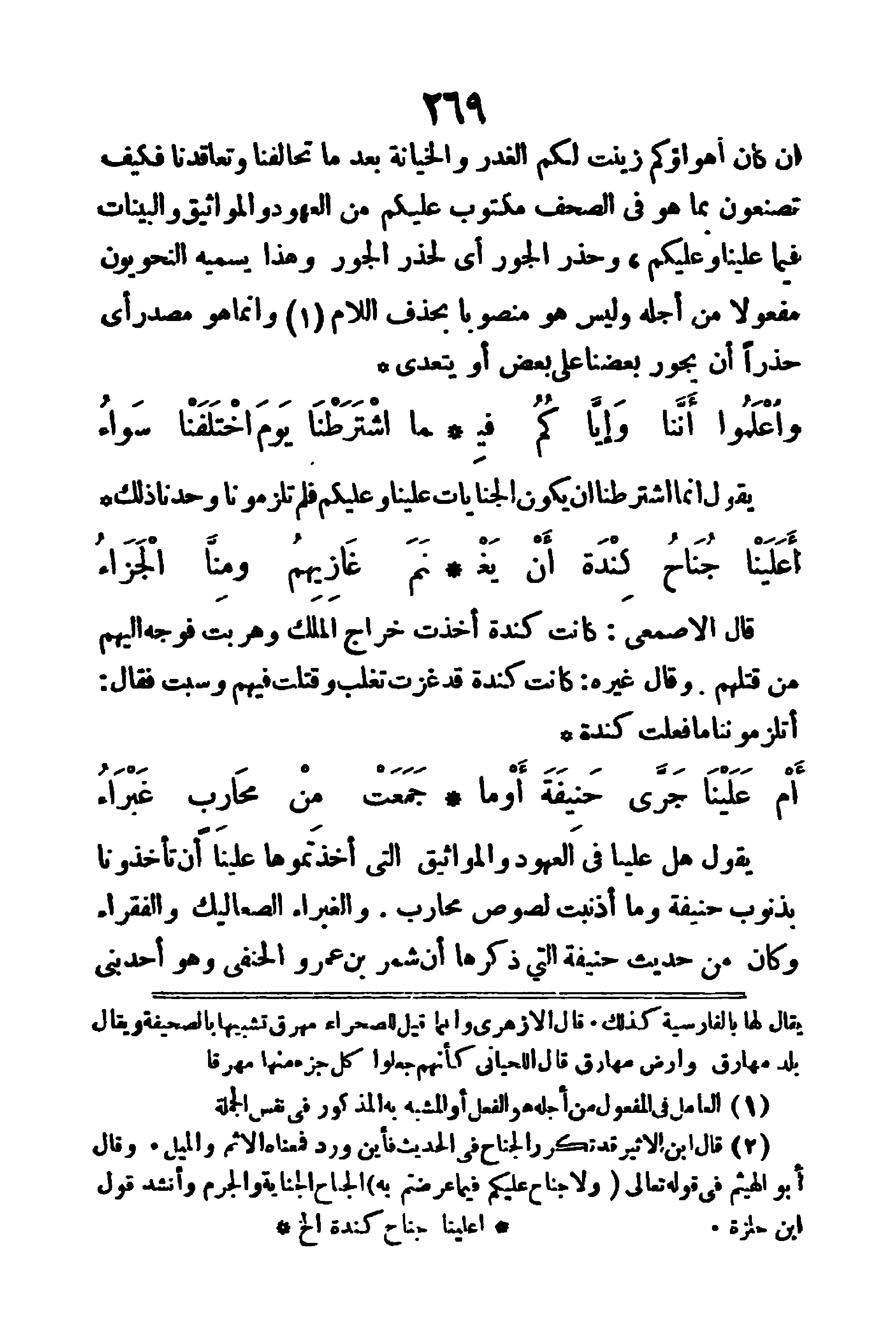 أن كان أهواؤكم زينت لكم الغدر والخيانة بعد ما تحالفنا وتعاقدنا فكيف تصنعون بما هو في الصحف مكتوب عليكم من العهود والمواثيق والبينات فيما علينا وعليكم؟ وحذر الجور: أي لحذر الجور، وهذا يسميه النحويون مفعولا من أجله، وليس هو منصوبا بحذف اللام وإنما هو مصدر، أي حذرا أن يجور بعضنا على بعض أو يتعدى.