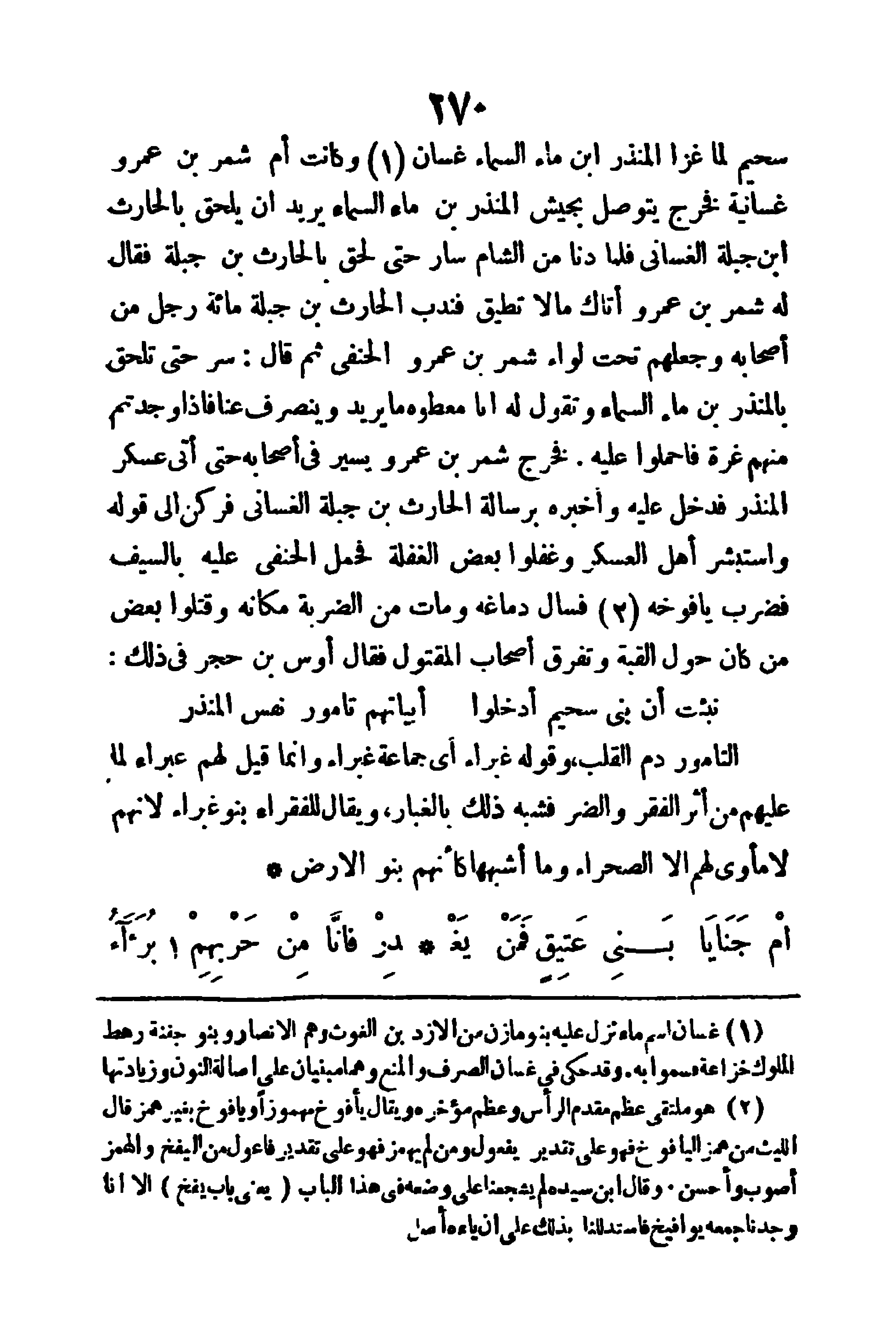 سحيم - لما غزا المنذر بن ماء السماء غسان، وكانت أم شمر بن عمرو غسانية، فخرج