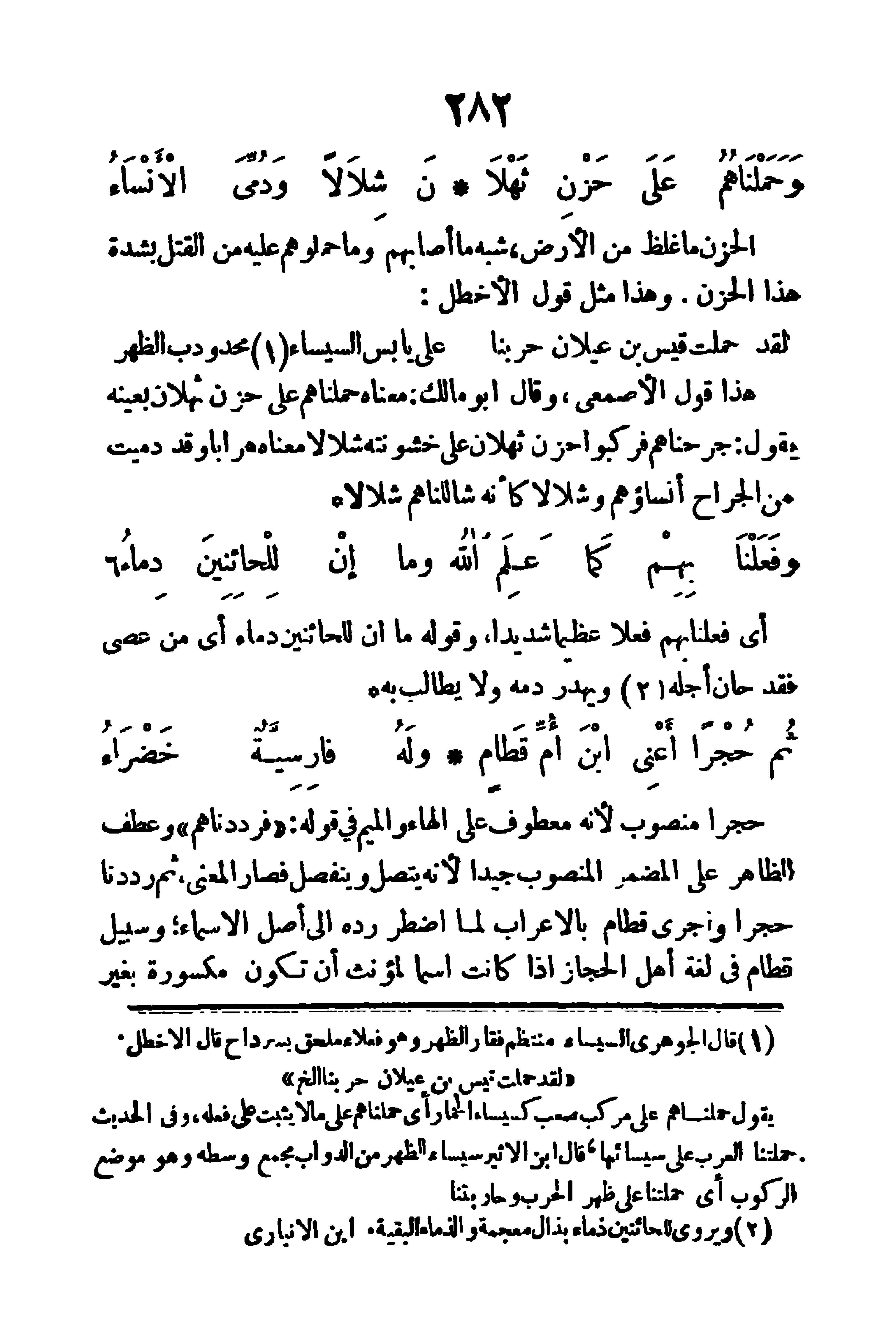 (وَحَمَلْنَاهُمُ عَلَى حَزْنِ ثَهْلاَ ... نَ شِلاَلاً، وَدُمِّىَ الأنْسَاءُ)