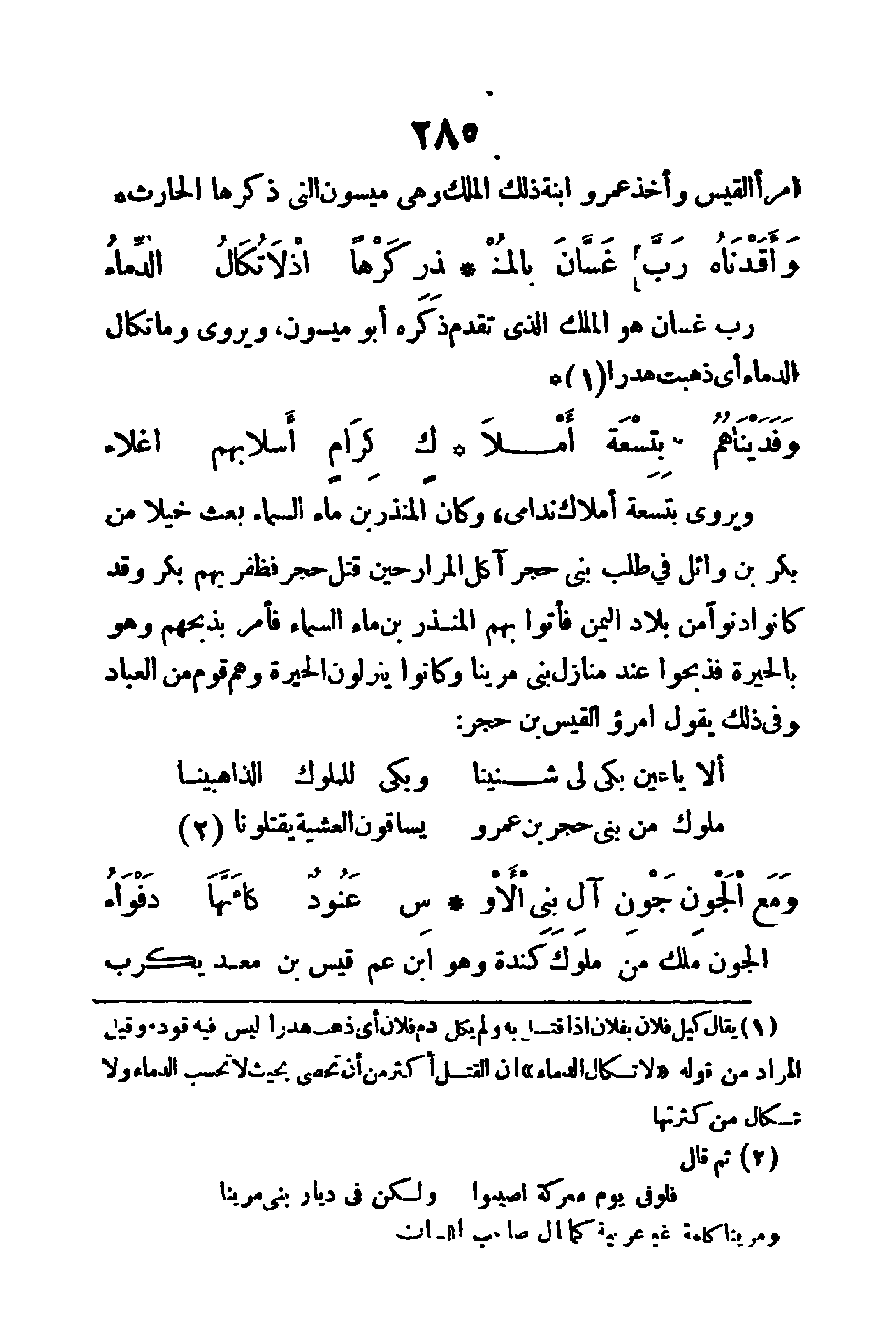 (وَأَقَدْنَاهُ رَبَّ غَسَّانَ بِالمُنْ ... ذِرِ كَرْهاً، إِذْ لاتُكَالُ الدِّمَاءُ)