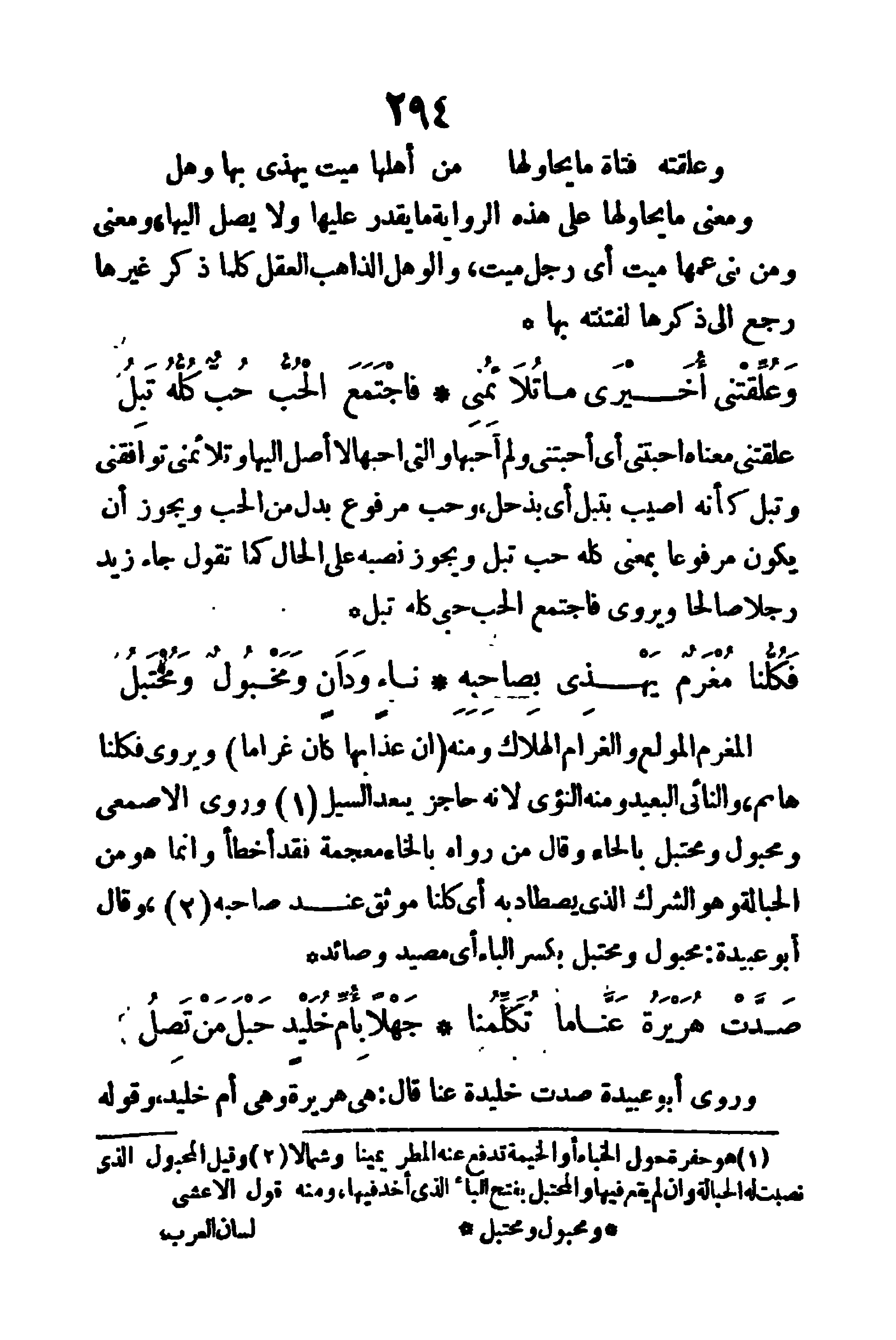 (وَعُلِّقَتْنِي أُخَيْرَى مَا تُلاَئِمُنِي ... فَاجْتَمَعَ الحُبُّ حُبٌّ كُلُّهُ تَبِلُ)