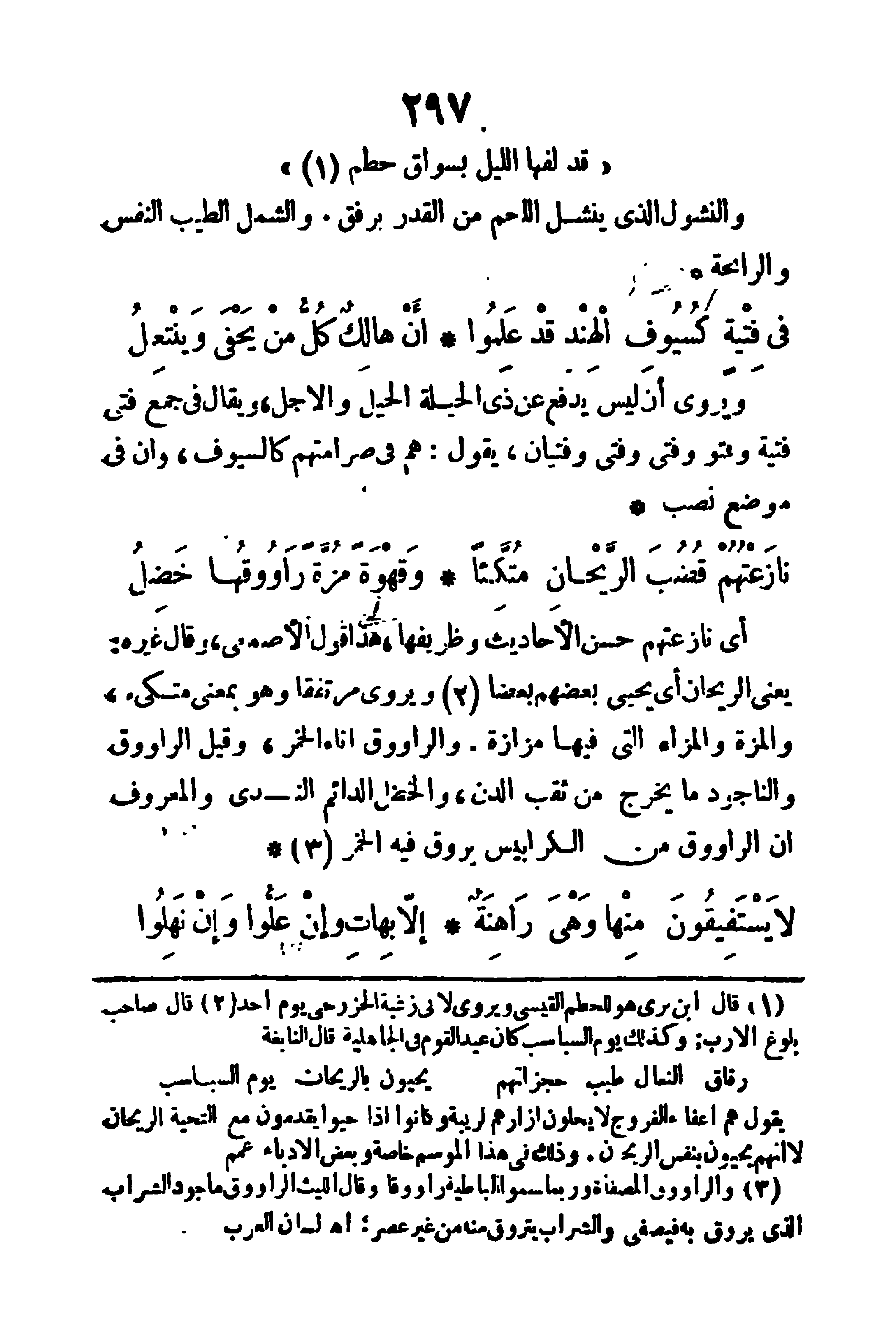 (نَازَعْتُهُمْ قُضُبَ الرَّيْحَانِ مُتًّكِئاً ... وَقَهْوَةً مُزَّةً رَاوُوقُهَا خَضِلُ)