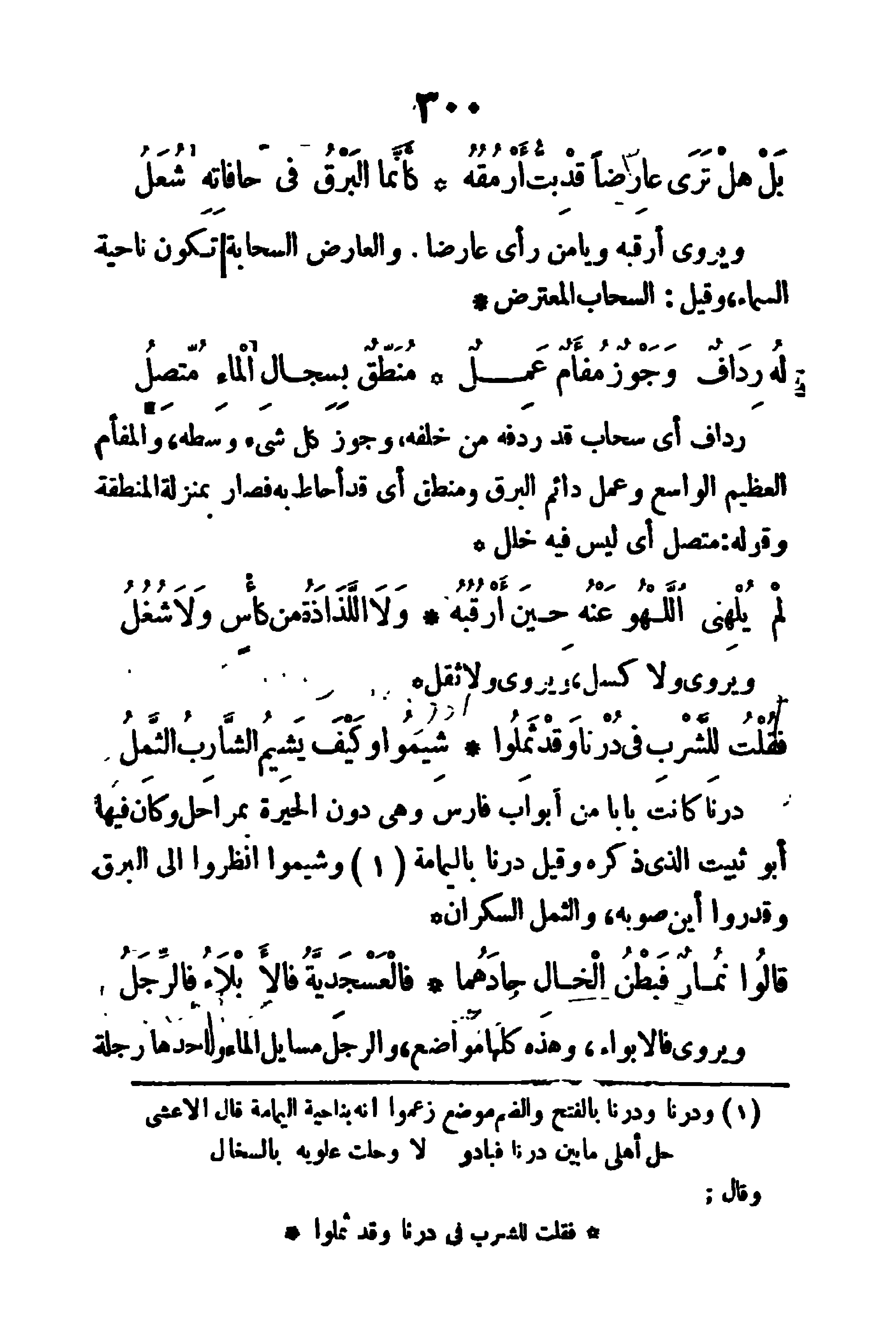 دُرنا: كانت بابا من أبواب فارس، وهي دون الحيرة بمراحل، وكان فيها أبو ثُبيت الذي ذكره، وقيل: دُرنا باليمامة، وشيموا: انظروا إلى البرق وقدَّروا أين صوبه، والثمل: السكران.