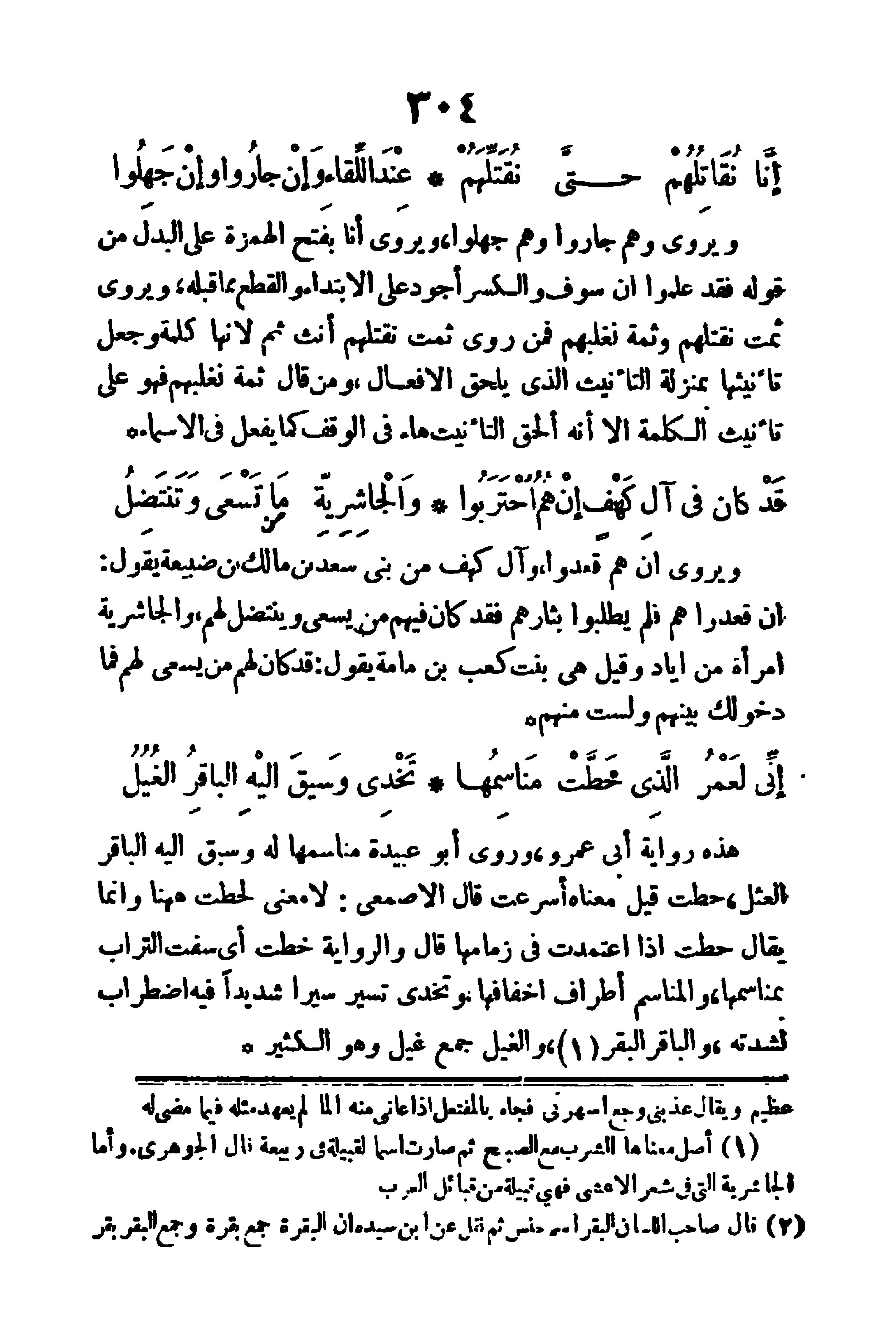 ويروى (وهم جاروا وهم جهلوا) ويروى (أنّا) بفتح الهمزة على البدل من قوله (فقد علموا أن سوف) والكسر أجود على الابتداء والقطع مما قبله، ويروى (ثُمَّت نقتلهم) و (ثمة نغلبهم) فمن روى (ثمت نقتِّلهم) أنَّث ثم لأنها كلمة، وجعل تأنيثها بمنزلة التأنيث الذي يلحق الأفعال ومن قال (ثمة نغلبهم) فهو على تأنيث الكلمة إلا إنه ألحق التأنيث هاء في الوقف كما يفعل بالأسماء.