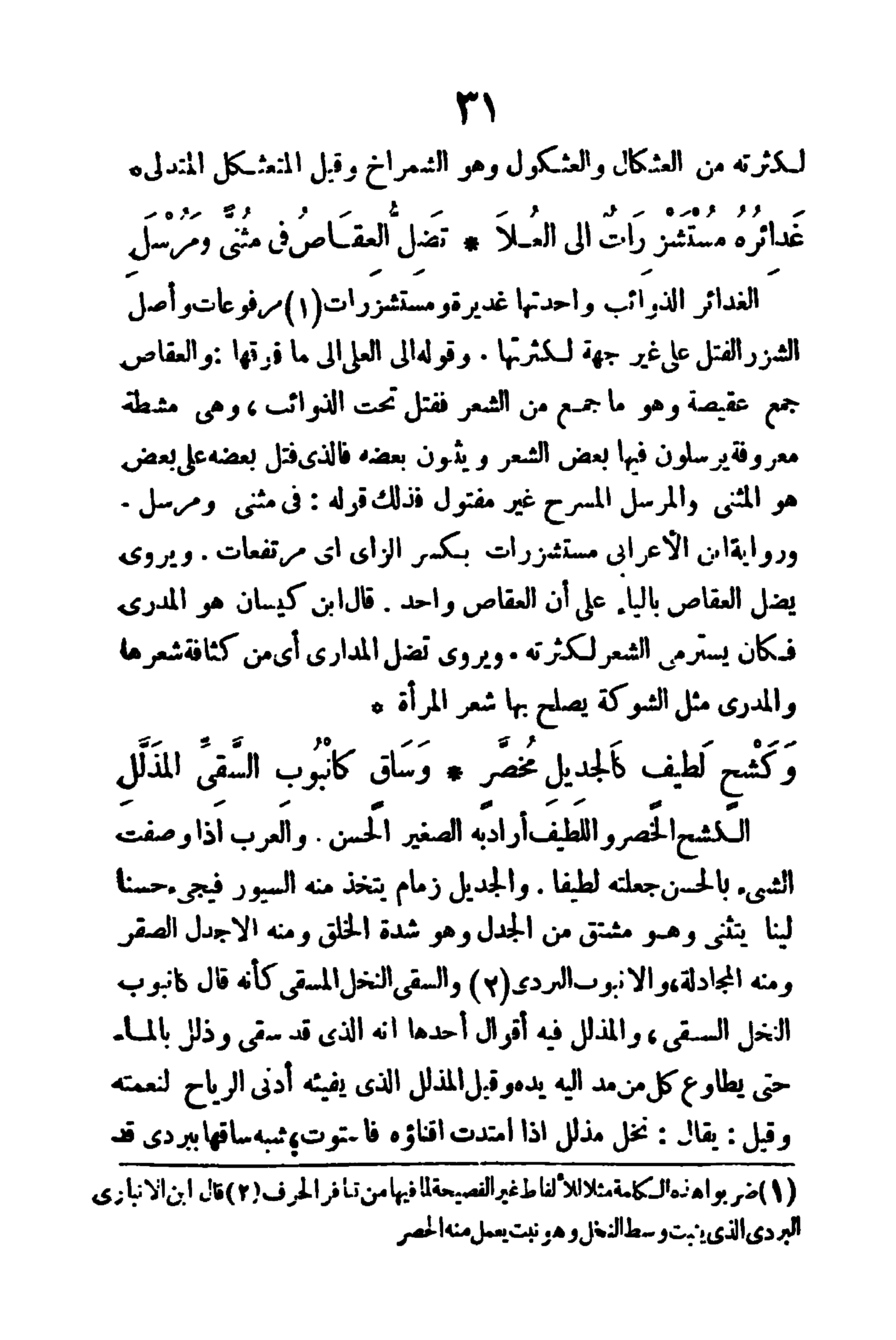 (غَدَائِرُهُ مُسْتَشْزَرَاتٌ إلى العُلاَ ... تَضِلُّ العِقَاصُ فِي مُثَنًّى وَمُرْسَل)