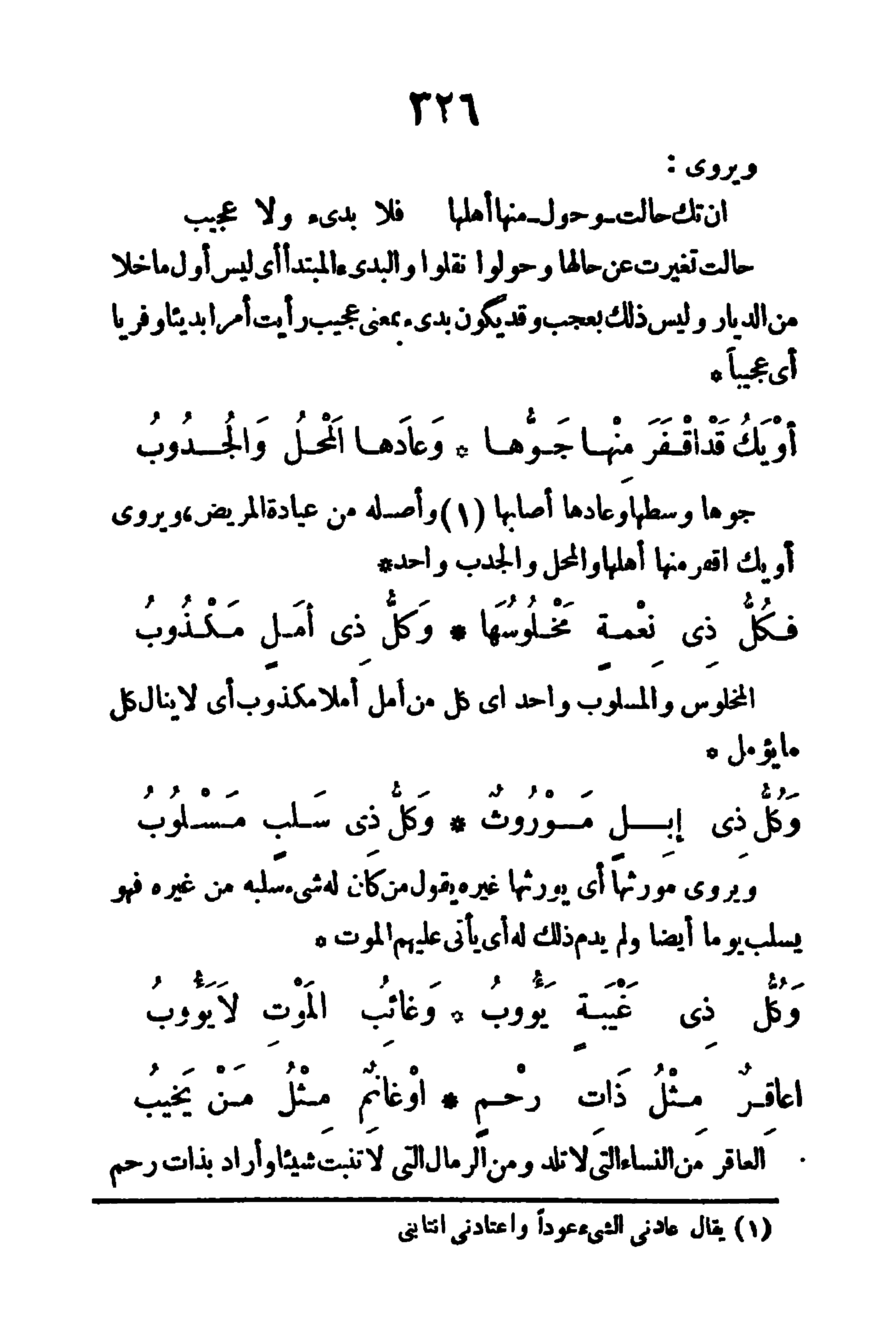(وَكلُّ ذِي إبِلٍ مَوْرُوثٌ ... وكلُّ ذِي سَلَبٍ مَسْلُوبُ)