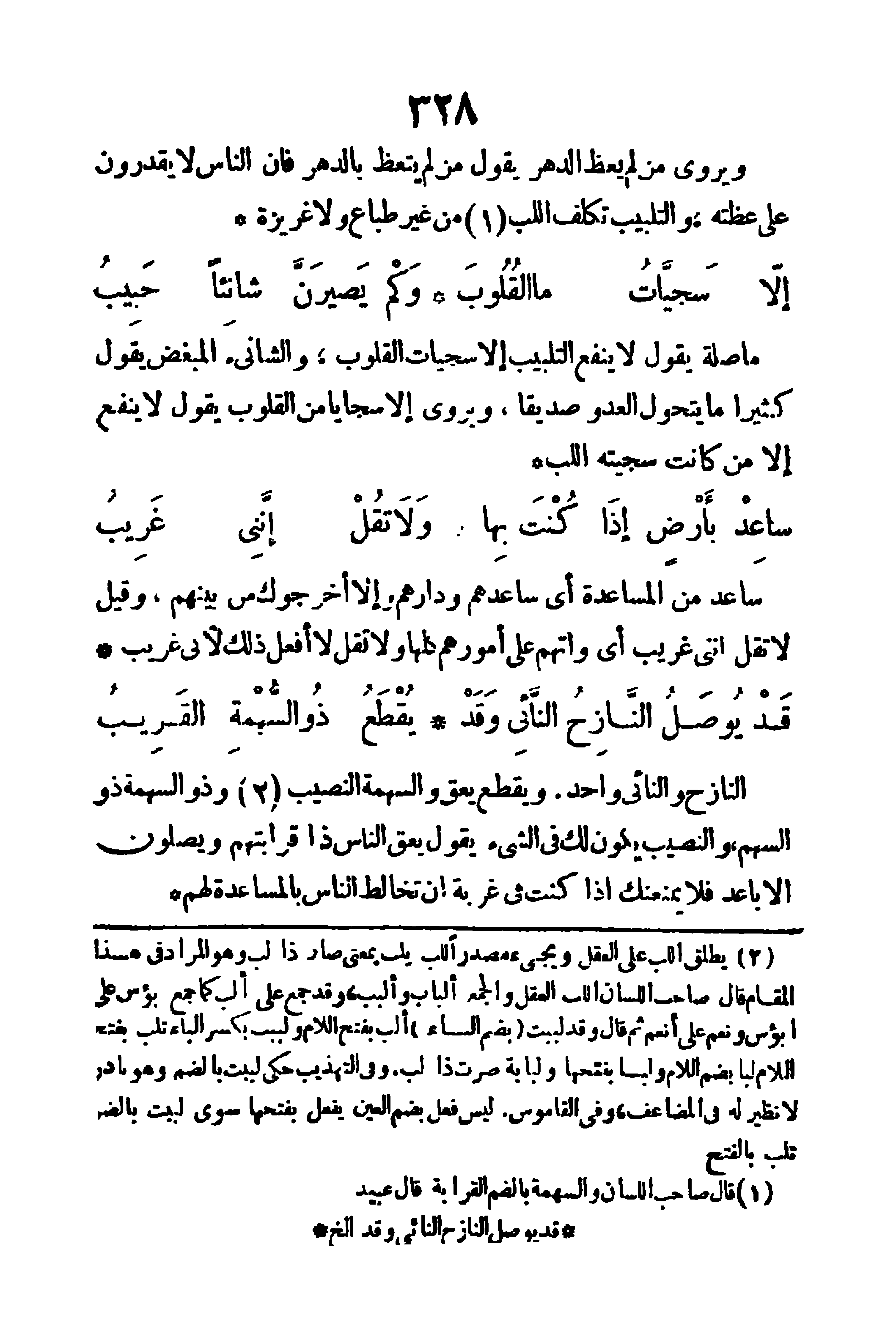 (إلاّ سَجِيَّاتُ مَا القُلُوبِ ... وَكَمْ يَصِيرَنْ شَائِناً حَبِيبُ)