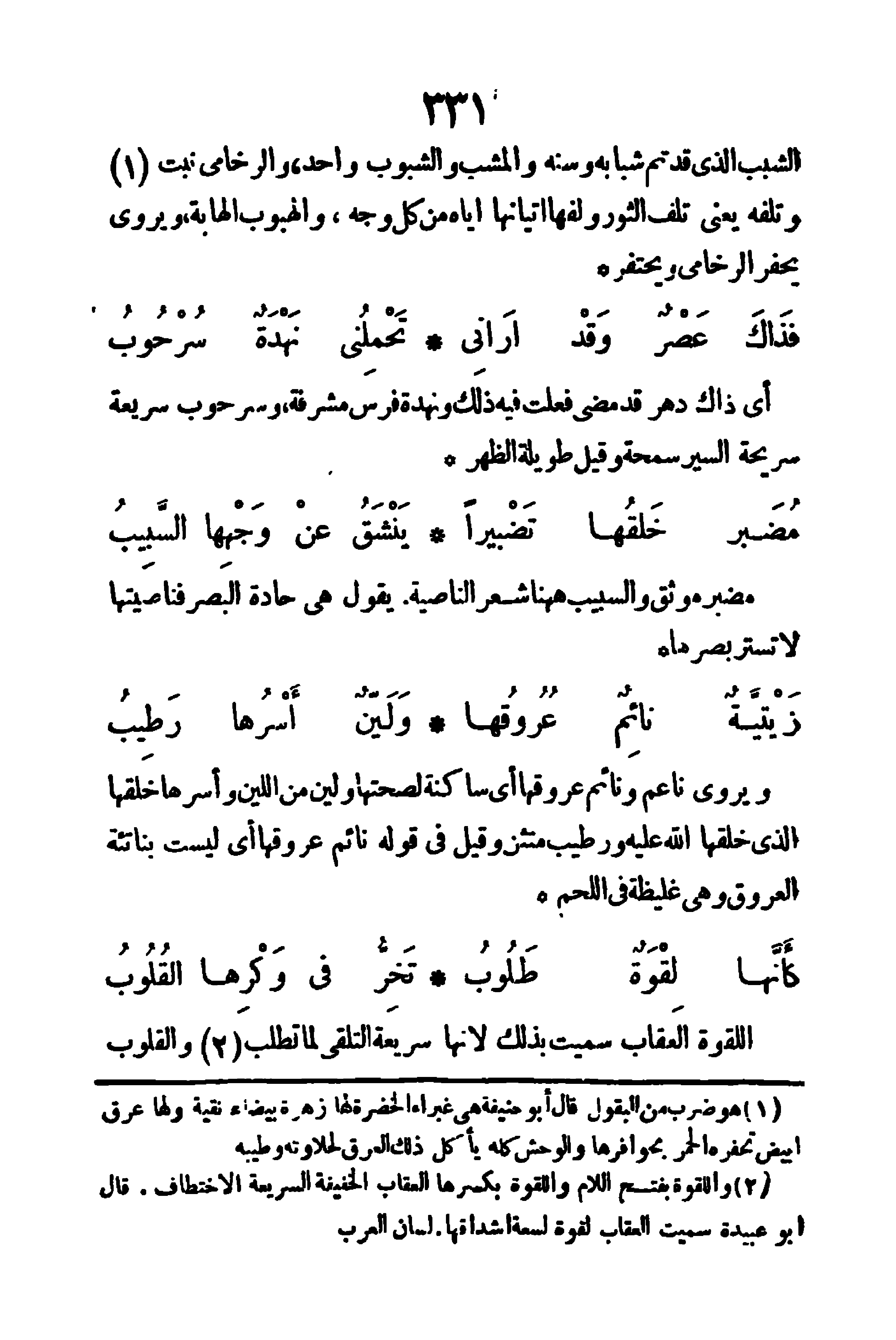 (كَأَنَّهَا لِقْوَةٌ طَلُوبُ ... تَخِرُّ فِي وَكْرِهَا القُلُوبُ)
