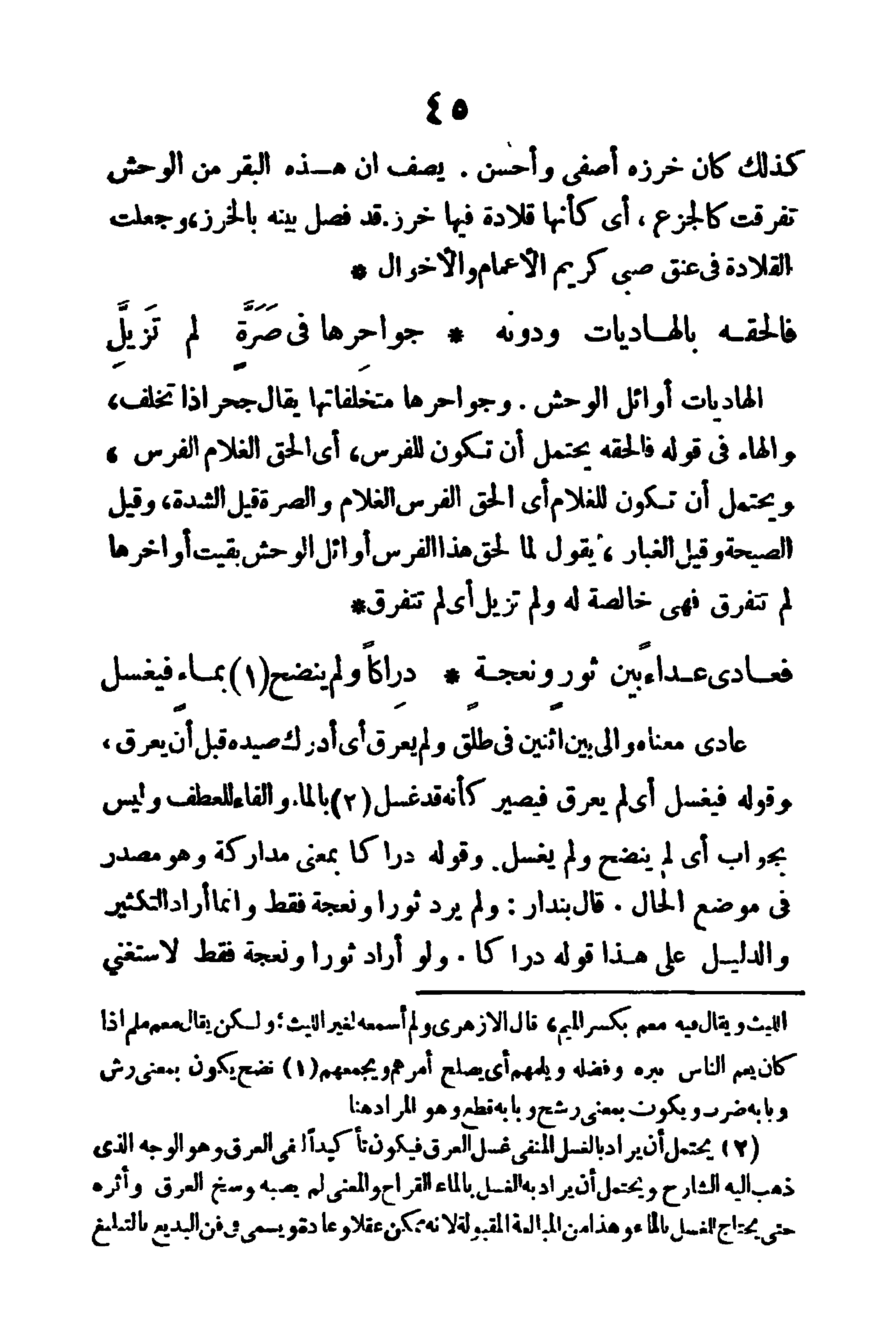 كذلك كان خرزه أصفى وأحسن يصف أن هذه البقر من الوحش تفرقت كالجزع، أي كأنها قلادة فيها خرز قد فصل بينه بالخرز، وجعلت القلادة في عنق صبي كريم الأعمام والأخوال.