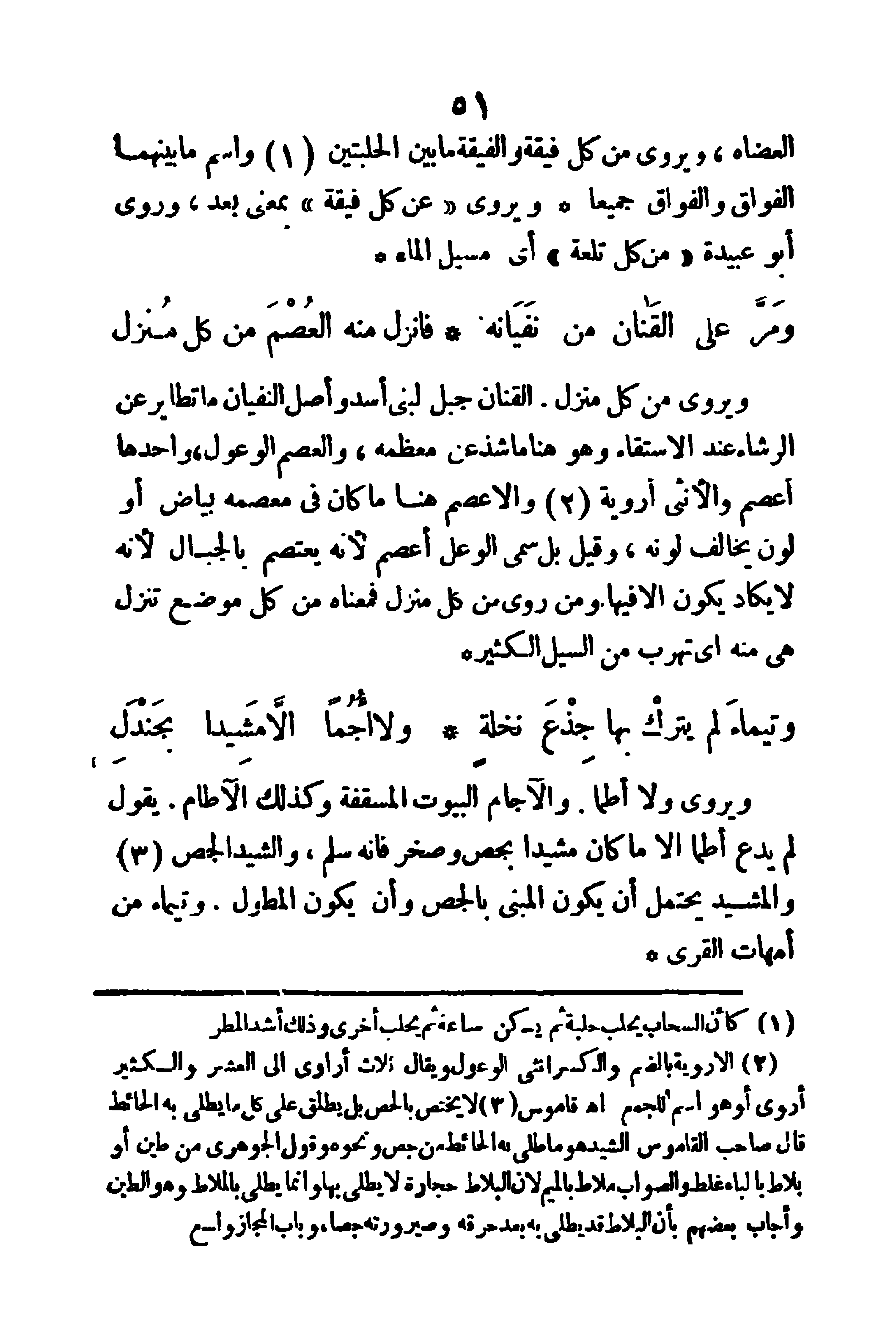 ويروى (من كل منزل) القنان: جبل لبني أسد، وأصل النفيان ما تطاير عن الرشاء عند الاستقاء، وهو هنا ما شذ عن معظمه. والعصم: الوعول، واحدها أعصم، والأنثى أروية والأعصم هنا: ما كان في معصمه بياض أو لون يخالف لونه، وقيل: بل سمى لوعل أعصم؛ لأنه يعتصم بالجبال، لأنه لا يكاد يكون إلا فيها، ومن روى (من كل منزل) فمعناه من كل موضع تنزل هي منه، أي تهرب من السيل الكثير.
